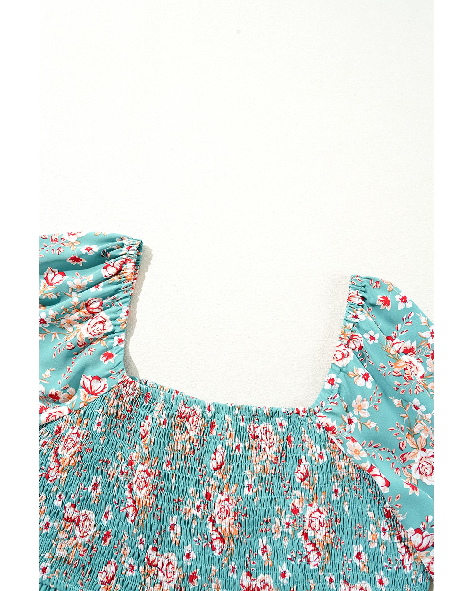 - Green Plus Size Floral Print Square Neck Smocked Maxi Dress