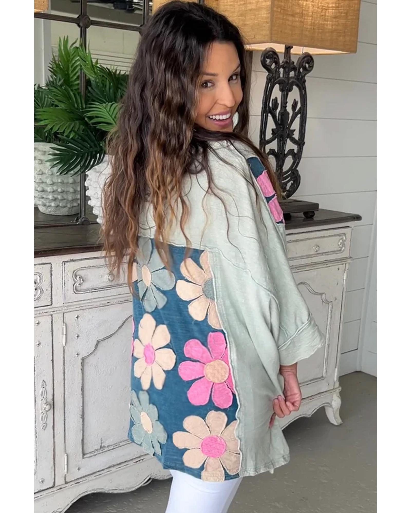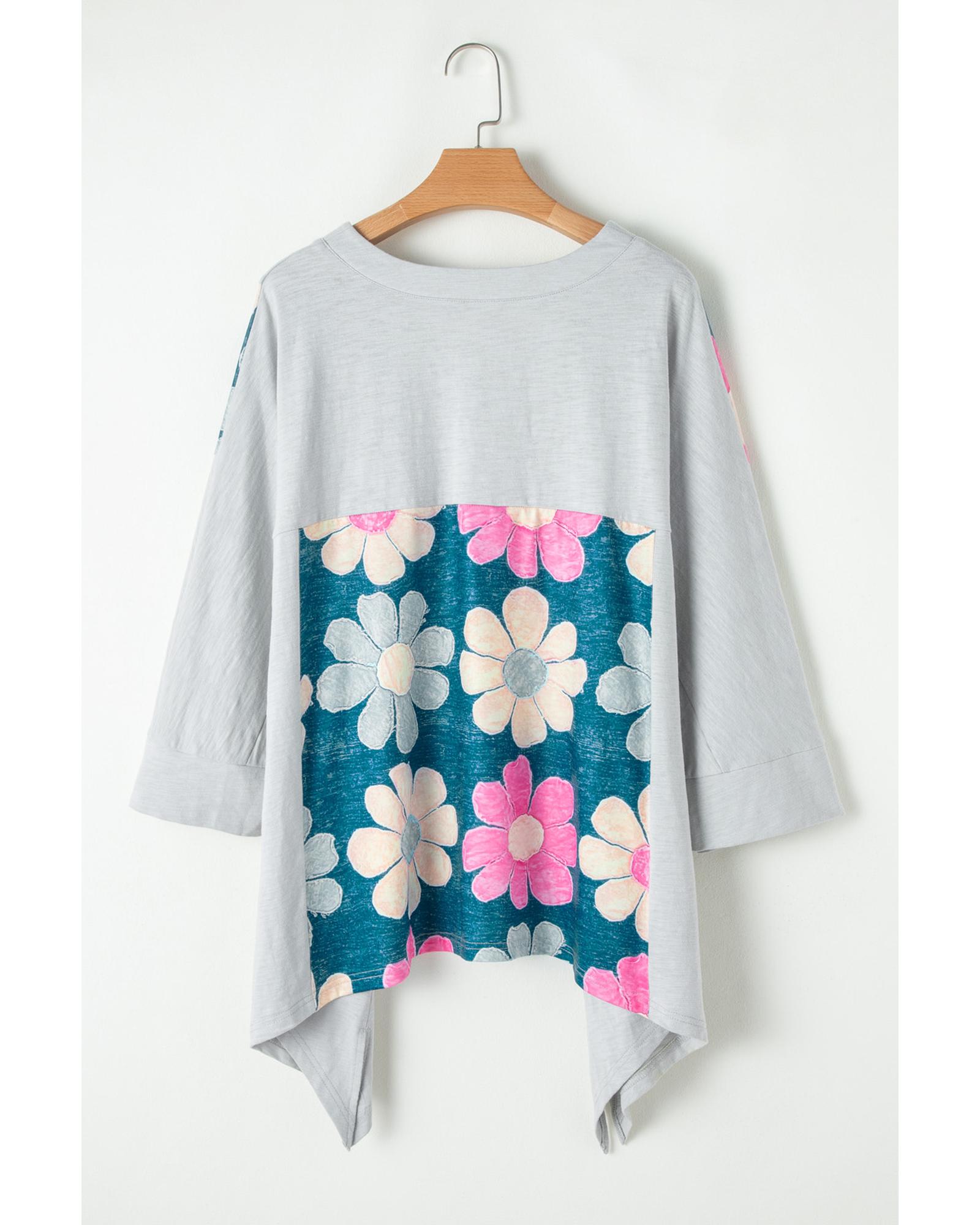 Green Plus Size Flower Patchwork Exposed Seam High Low Top - 3X Original price was: $77.99.Current price is: $42.99.