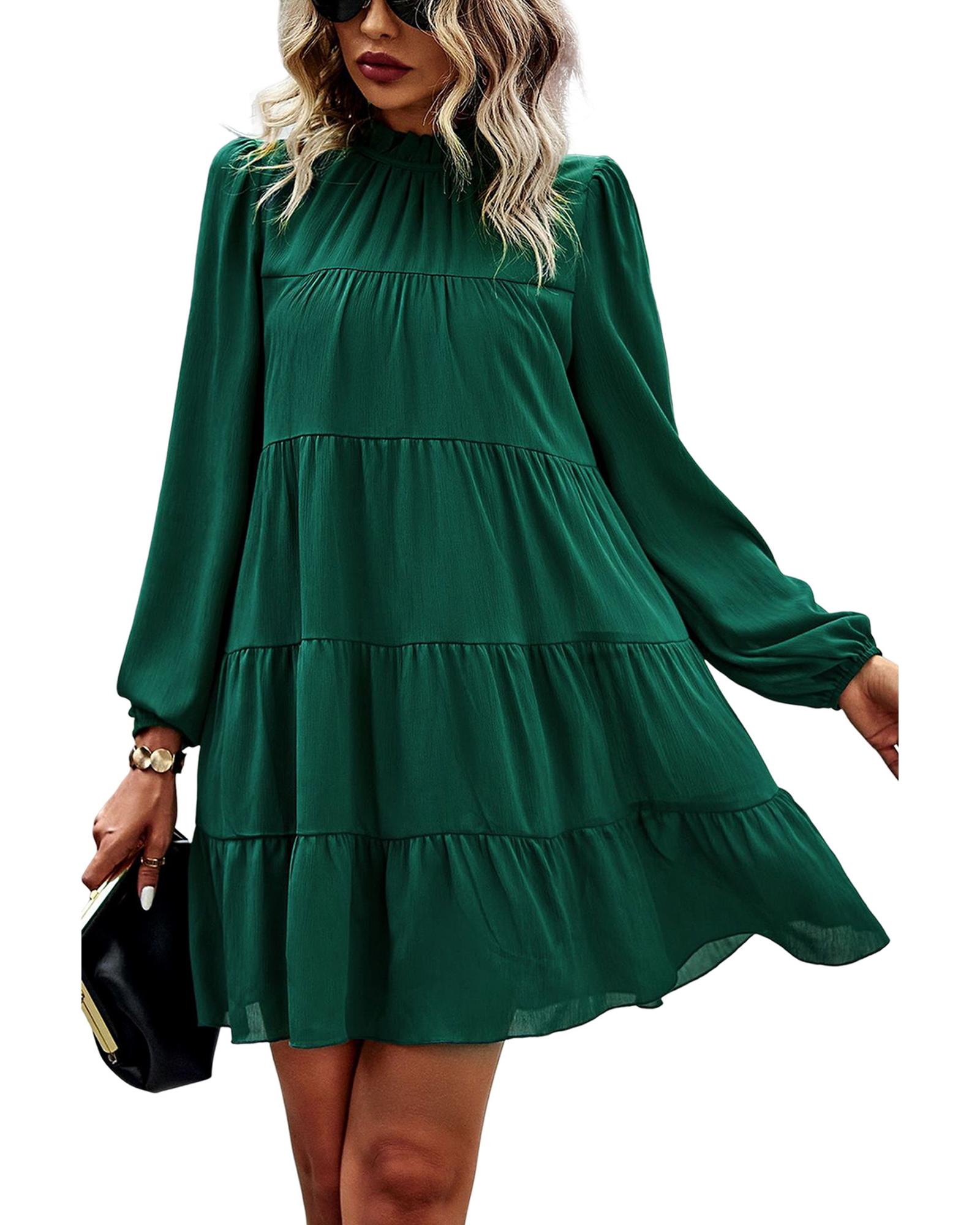 Green Puff Sleeve Mock Neck Back Knot Tiered Dress – XL