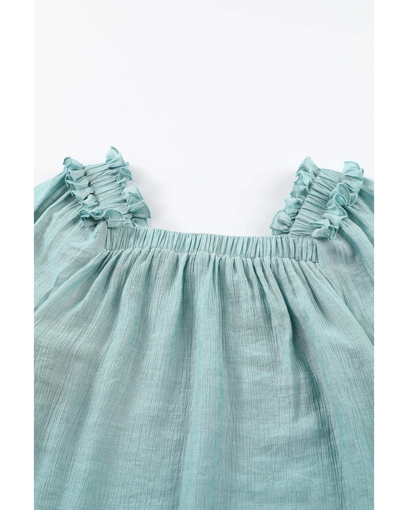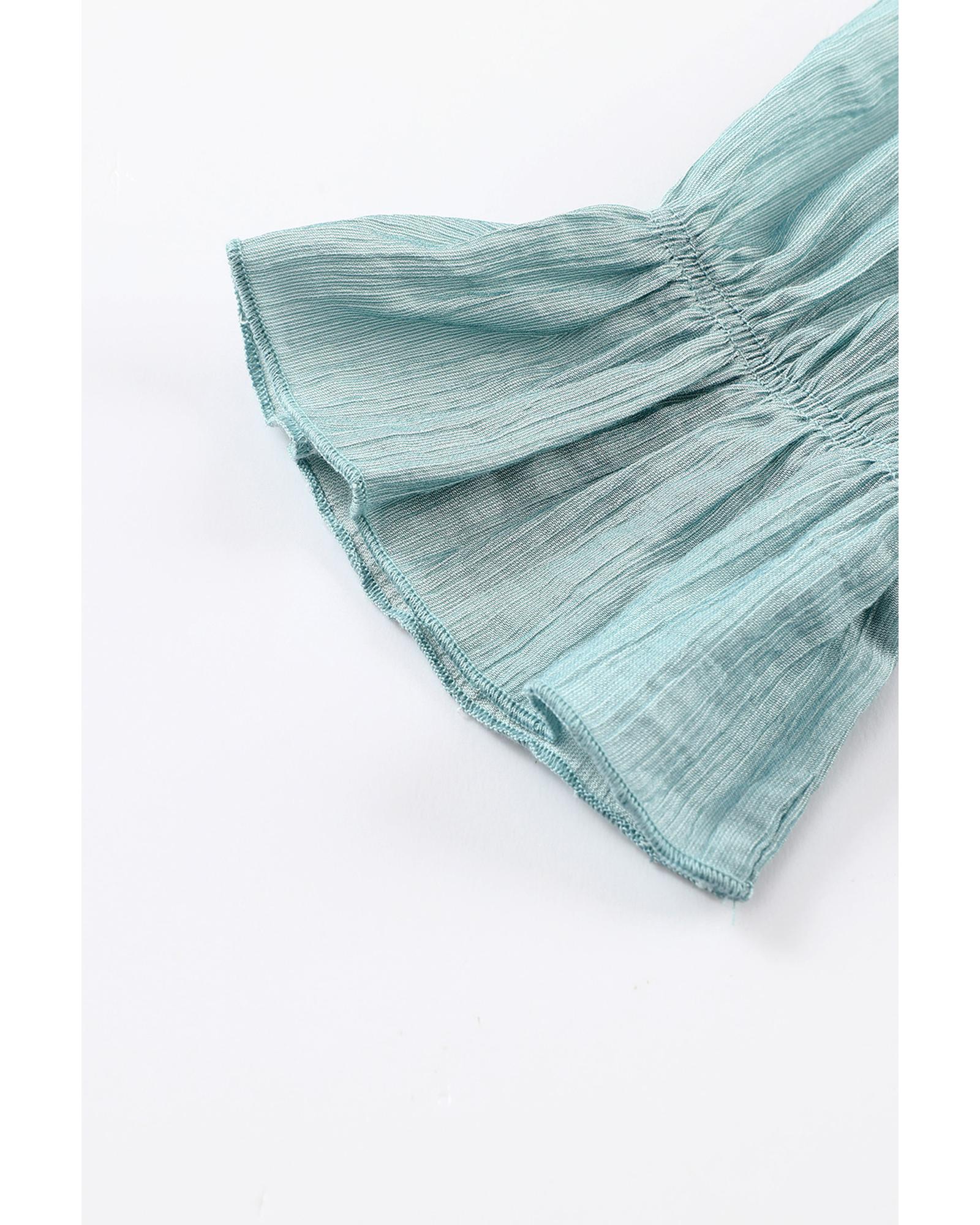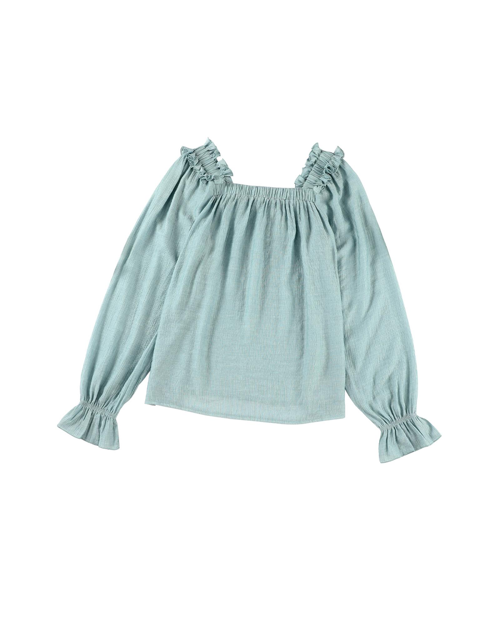 Green Ruffled Square Neck Cuffs Long Sleeve Blouse – M