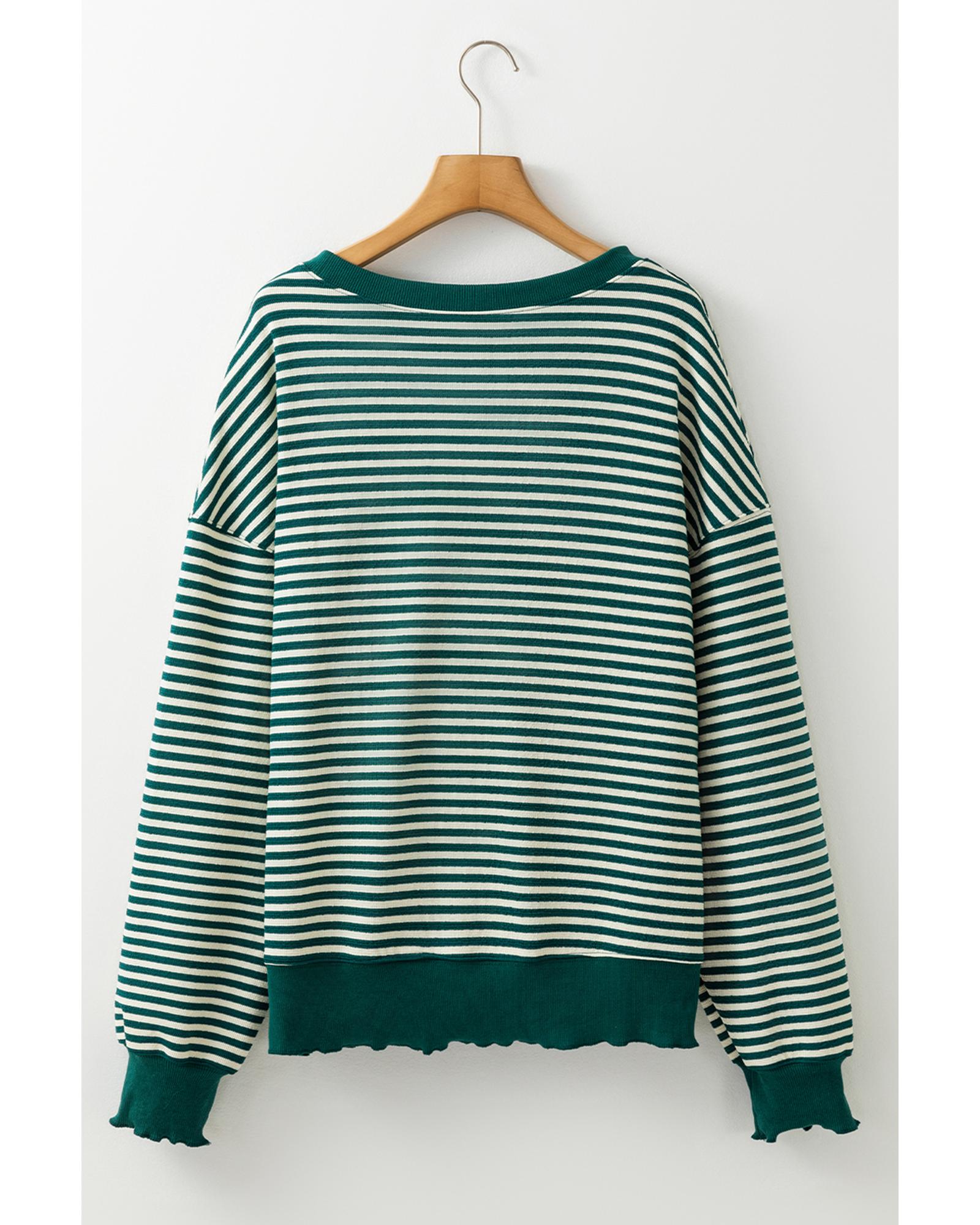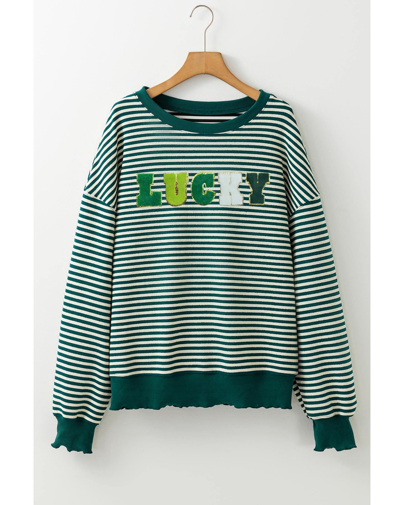 Green Stripe Chenille LUCKY Patched Pattern St Patrick Long Sleeve Top – XL