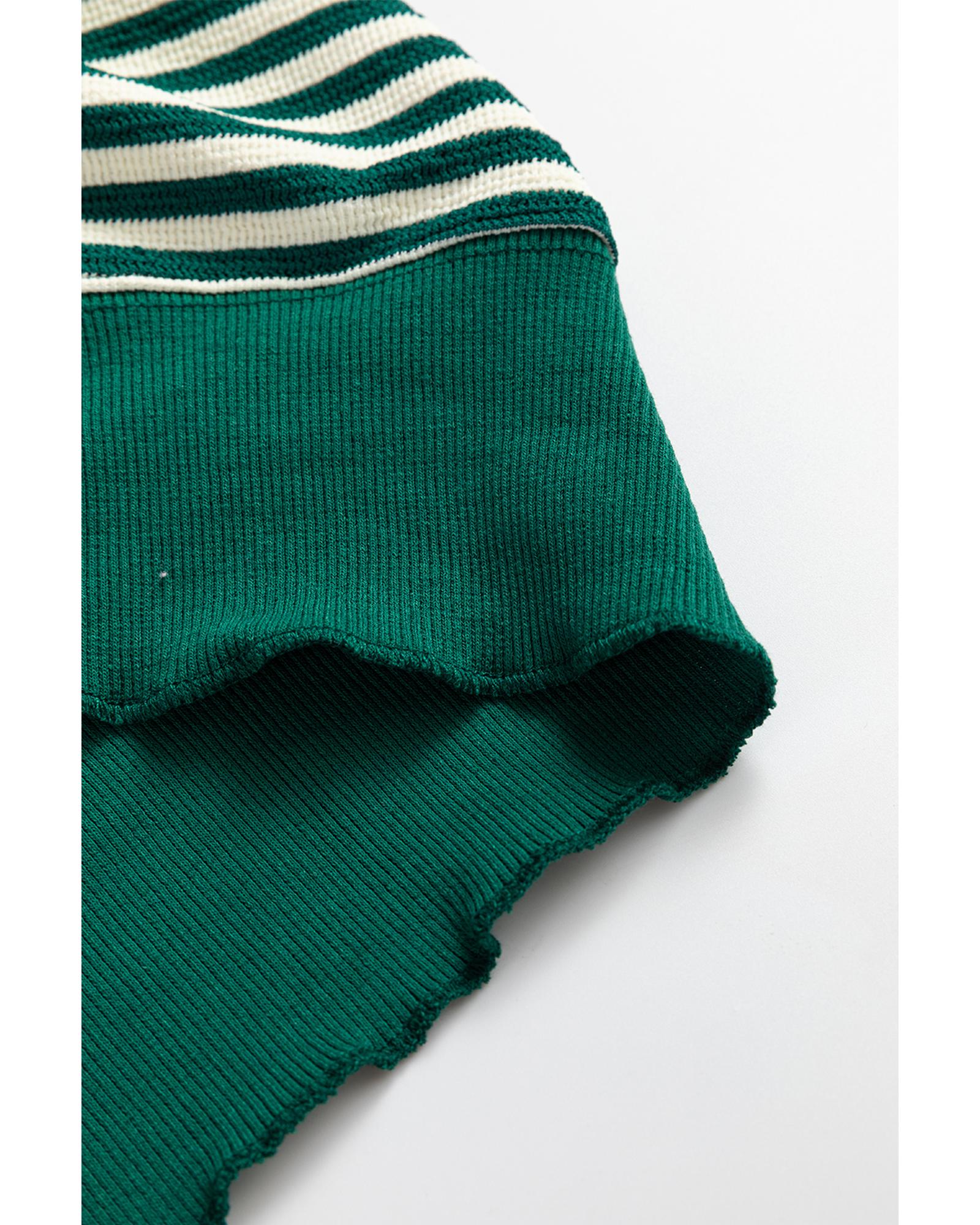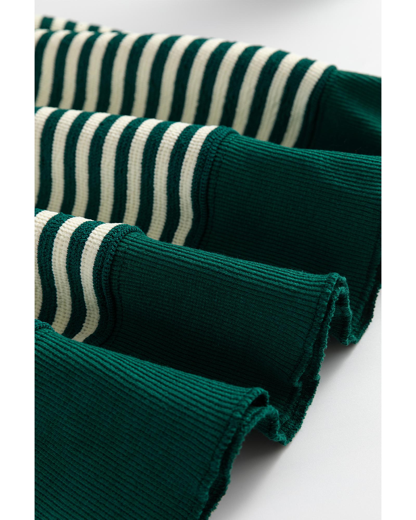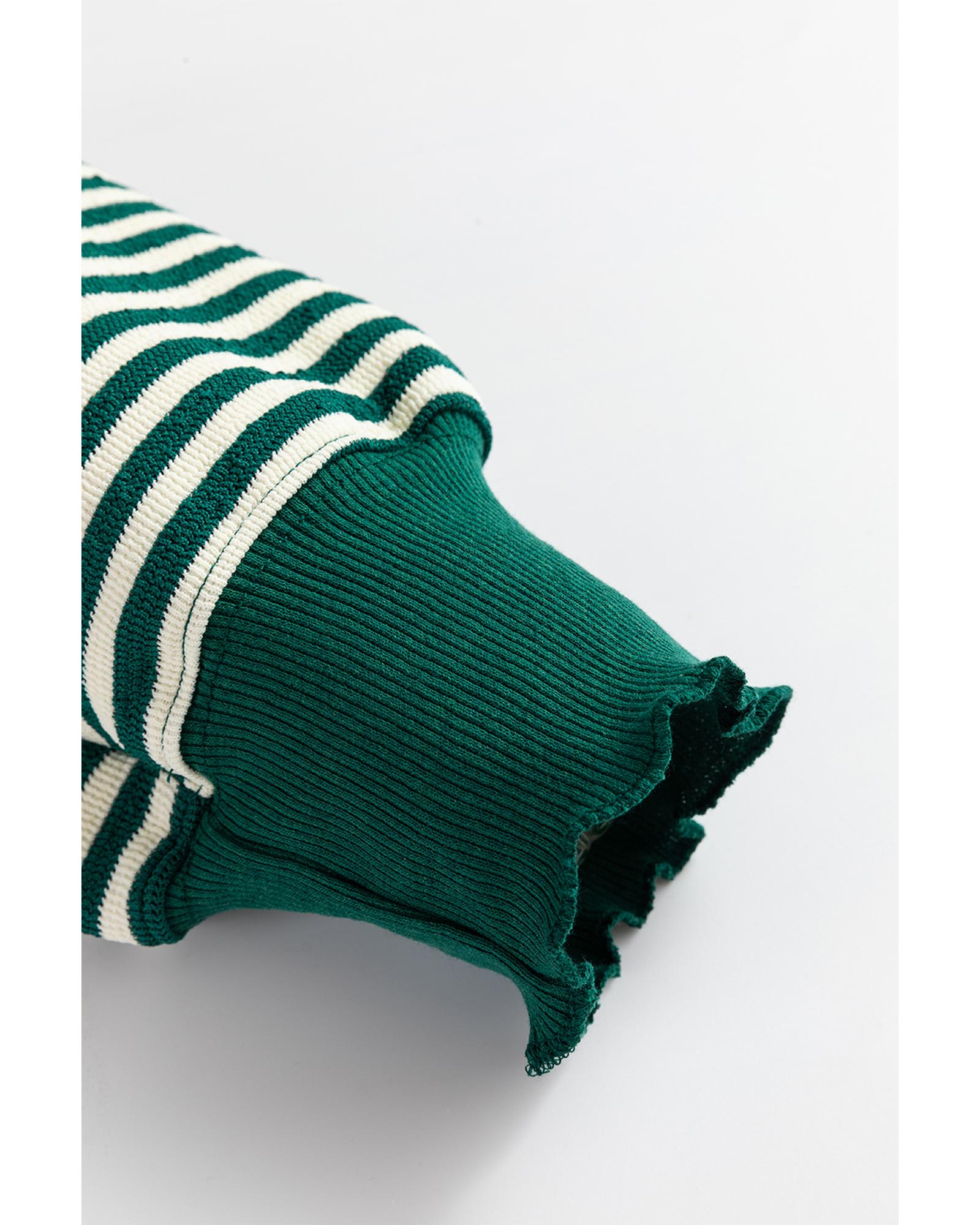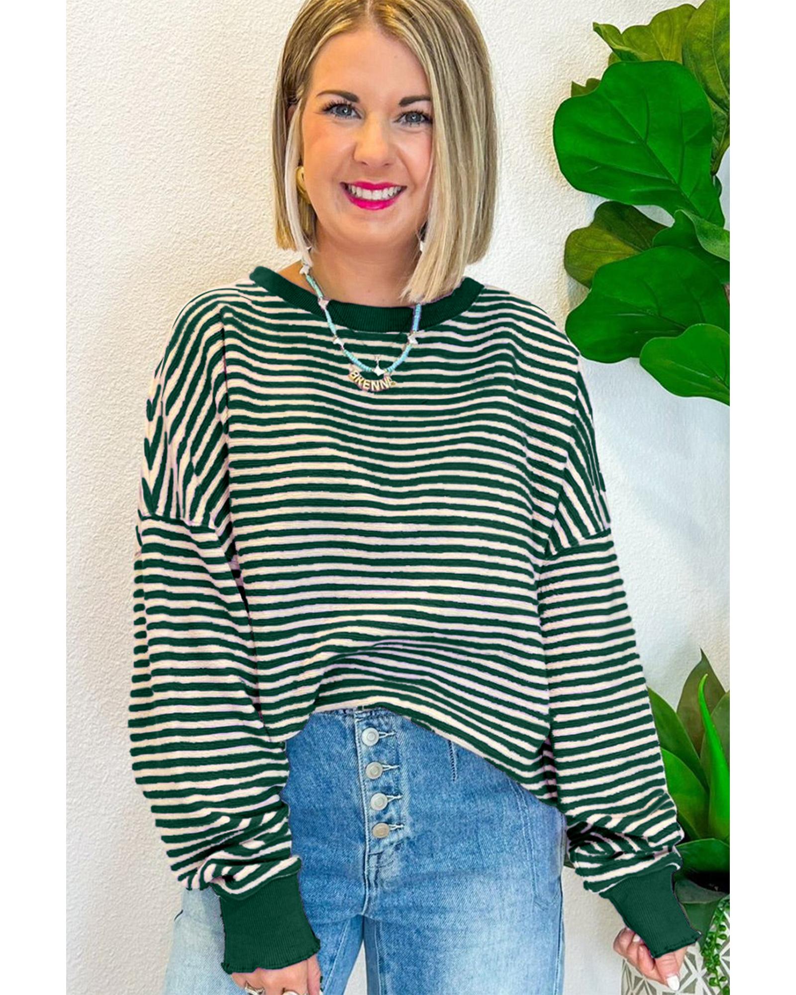 - Green Stripe Loose Drop Shoulder Long Sleeve Top