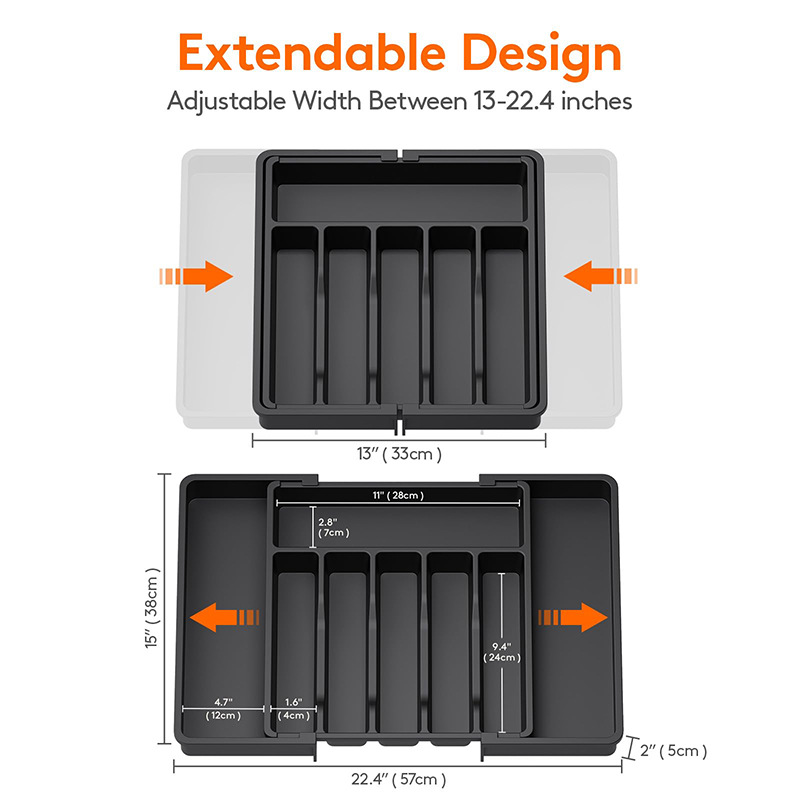- Adjustable width ranging from 13 inches (33cm) to 22.4 inches (57cm) for a perfect fit in any drawer.