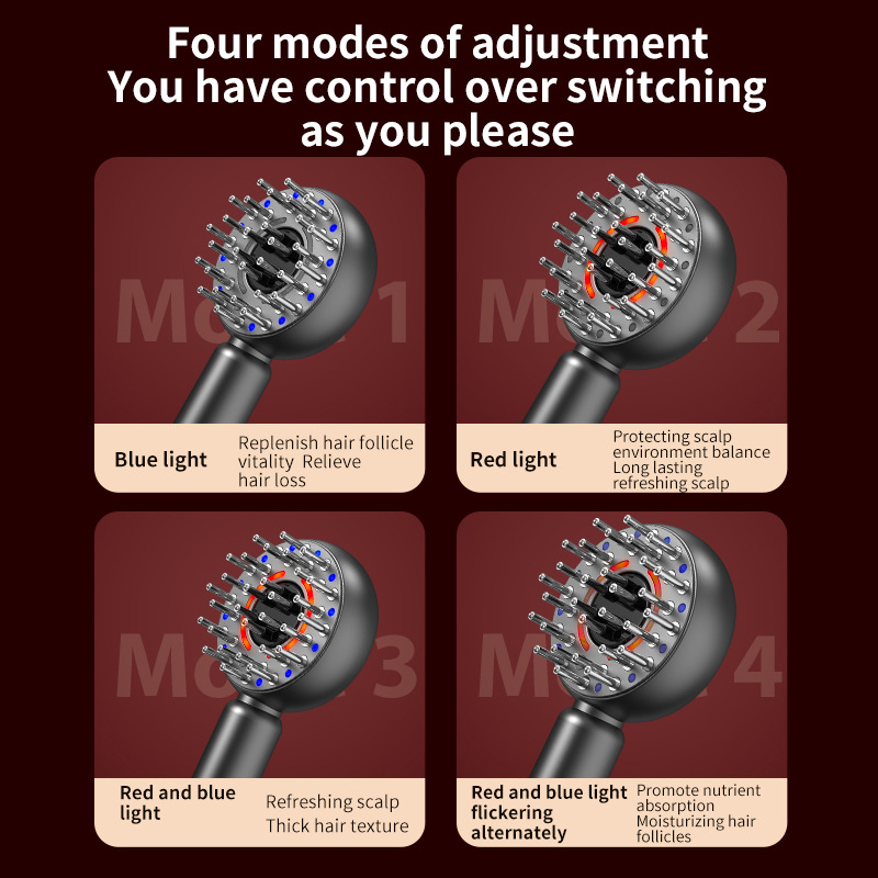 - Four Adjustable Modes: Tailor your treatment with four distinct modes combining light therapy and other functions to meet your specific scalp needs.