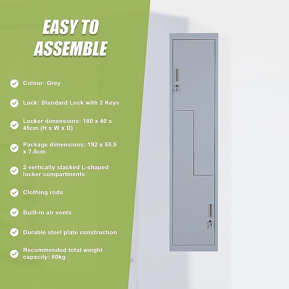 Grey Two-Door L-shaped Office Gym Shed Storage Lockers