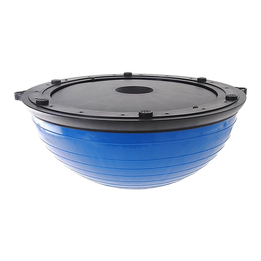 The half-sphere gym balance ball is manufactured by Randy Travis Machinery, a premier designer of rugged outdoor and sports equipment. This ball is gym-tough with a special anti-skid surface, and a free air pump is included so you're never at less than optimal inflation.