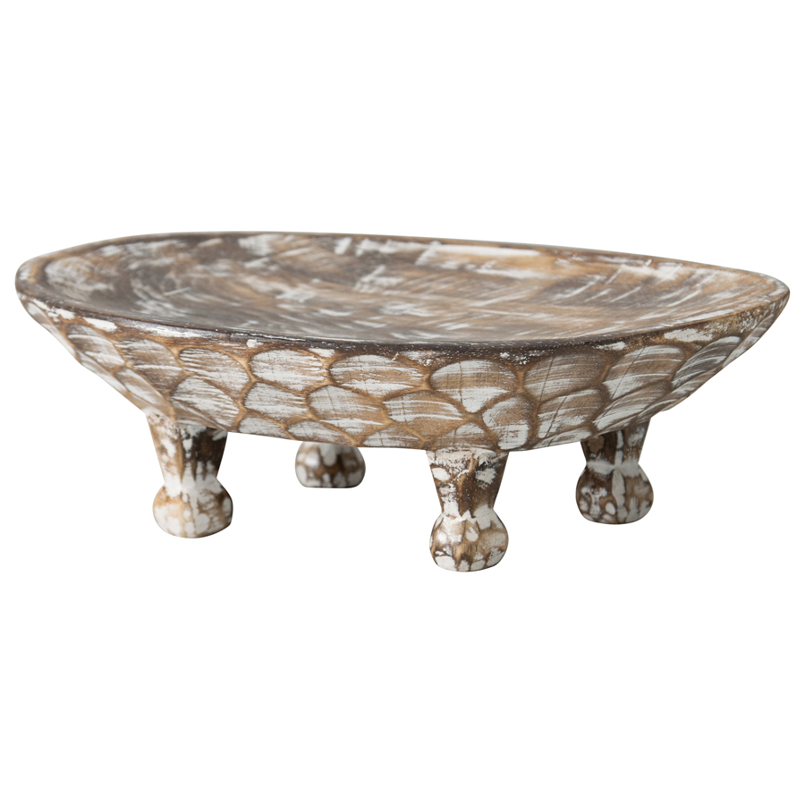 Handcarved Footed Oval Bowl 40x25cm