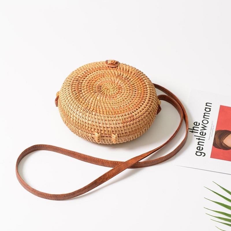 Handmade Round Rattan Bag Vintage Art Beach Diagonal Bag 18X18X6Cm