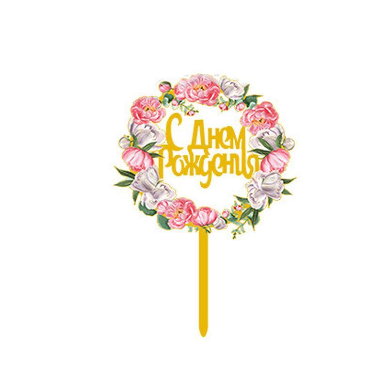 Happy Birthday Anniversary Wedding Cake Flowers Topper Acrylic Party Decorations – NO.02