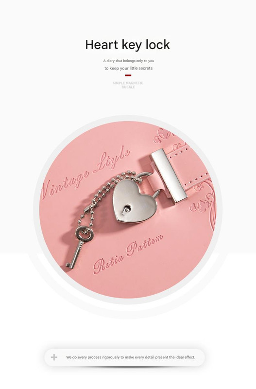 Heart Lock Diary with Key – Vintage Style Journal, Pink PU Leather, Secure and Elegant