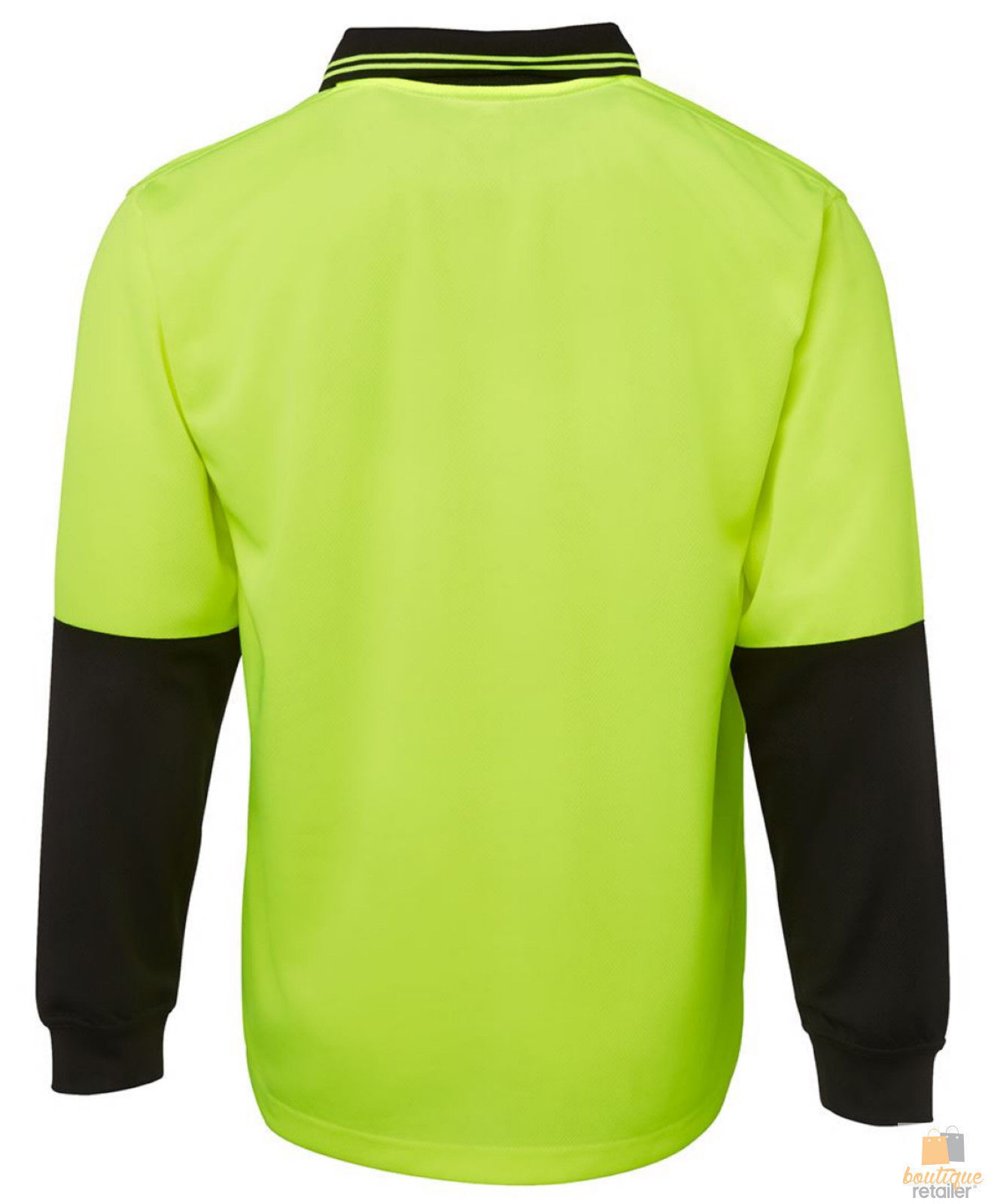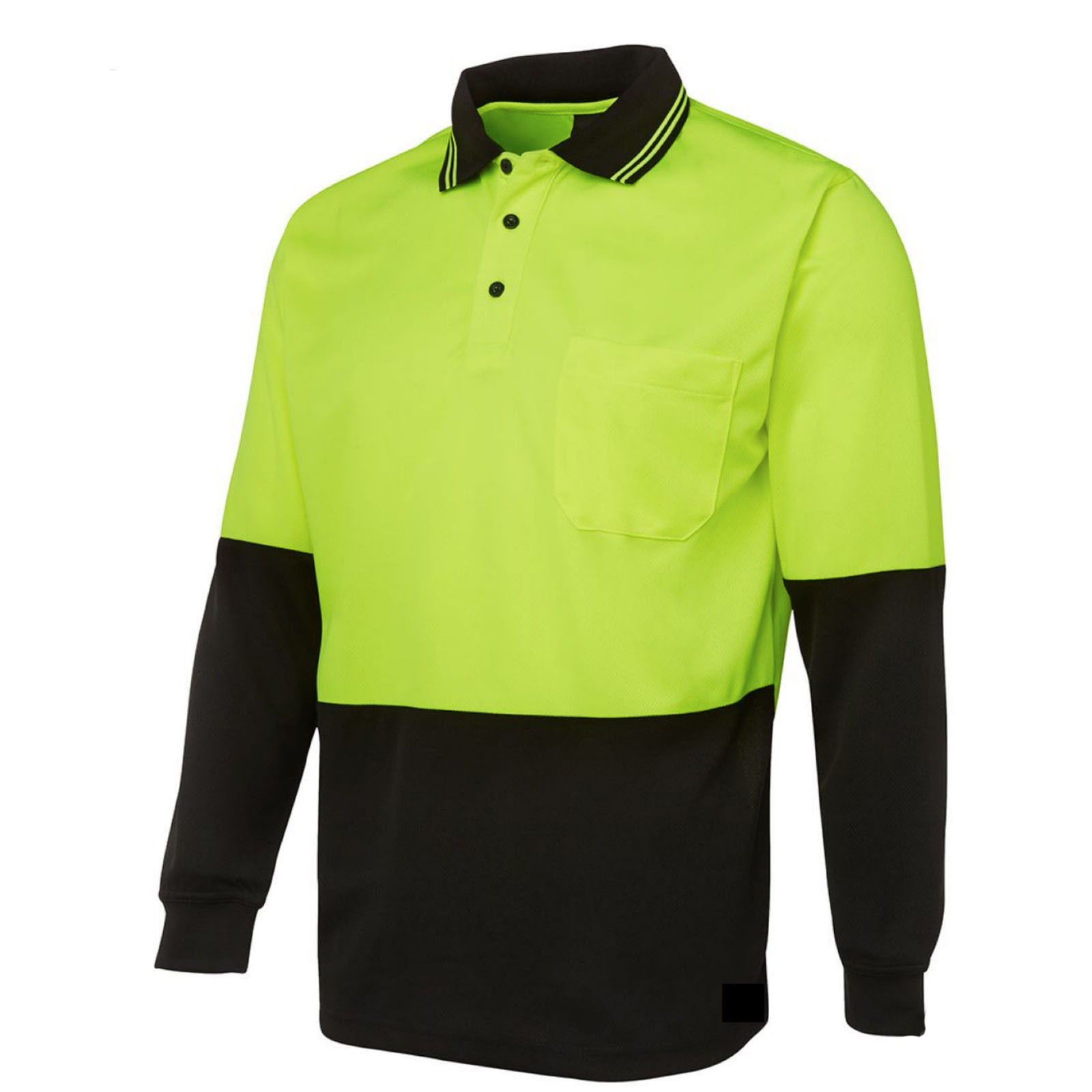 HI VIS LONG SLEEVE POLO SHIRT Top Safety Workwear Fluro Breathable Dry WB – Yellow – L