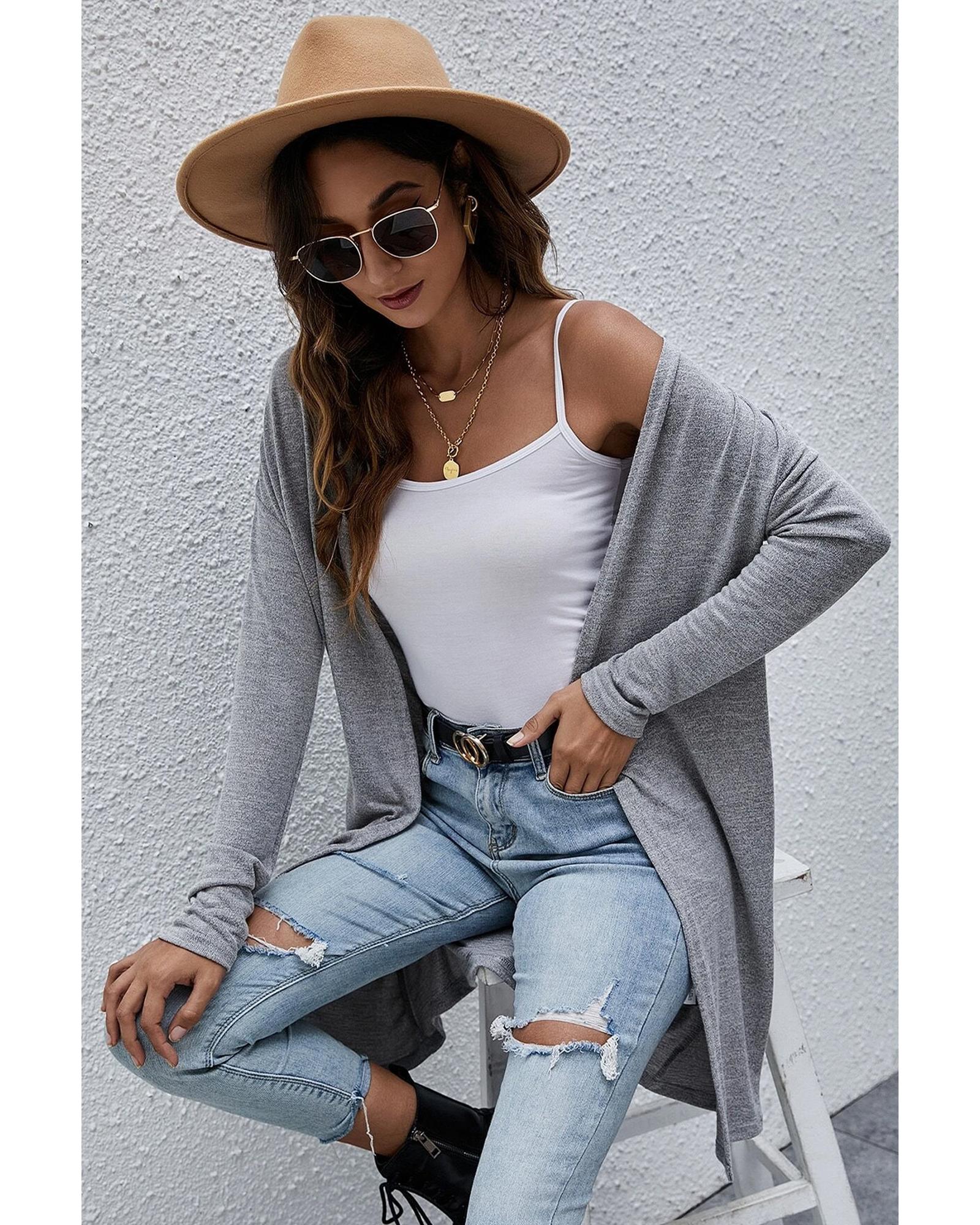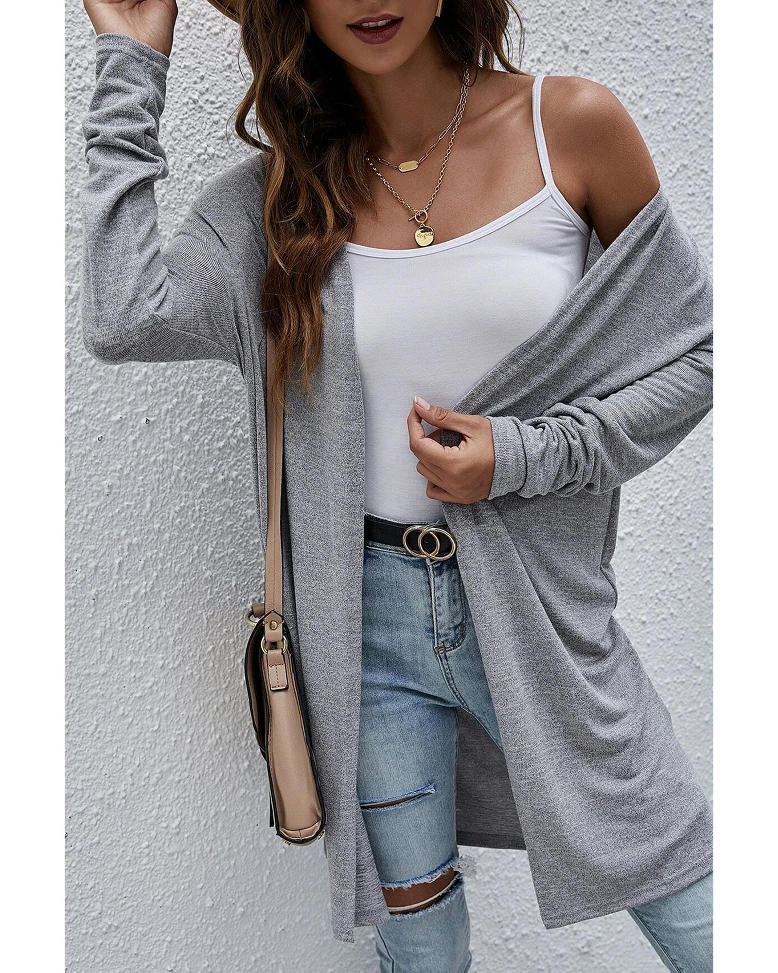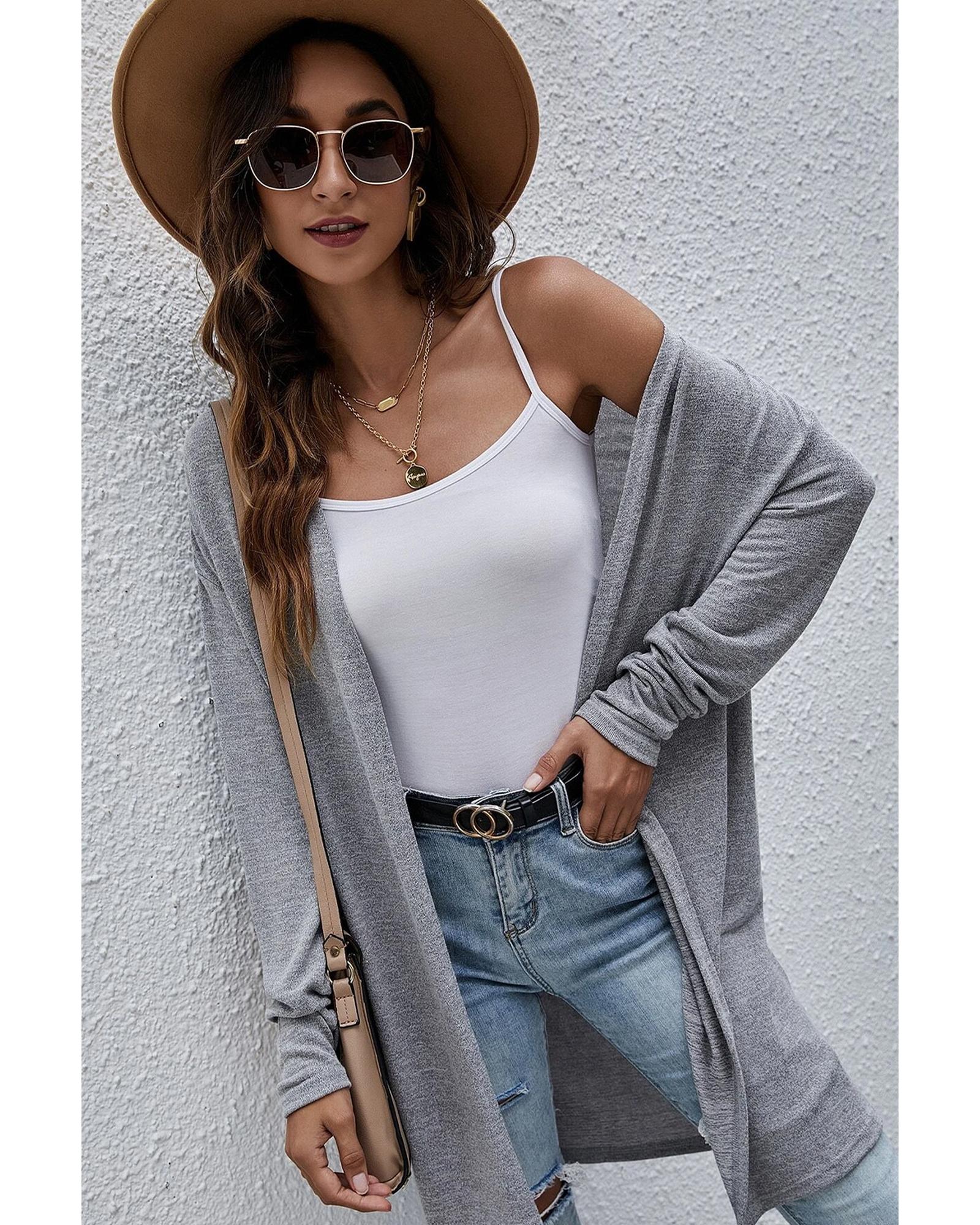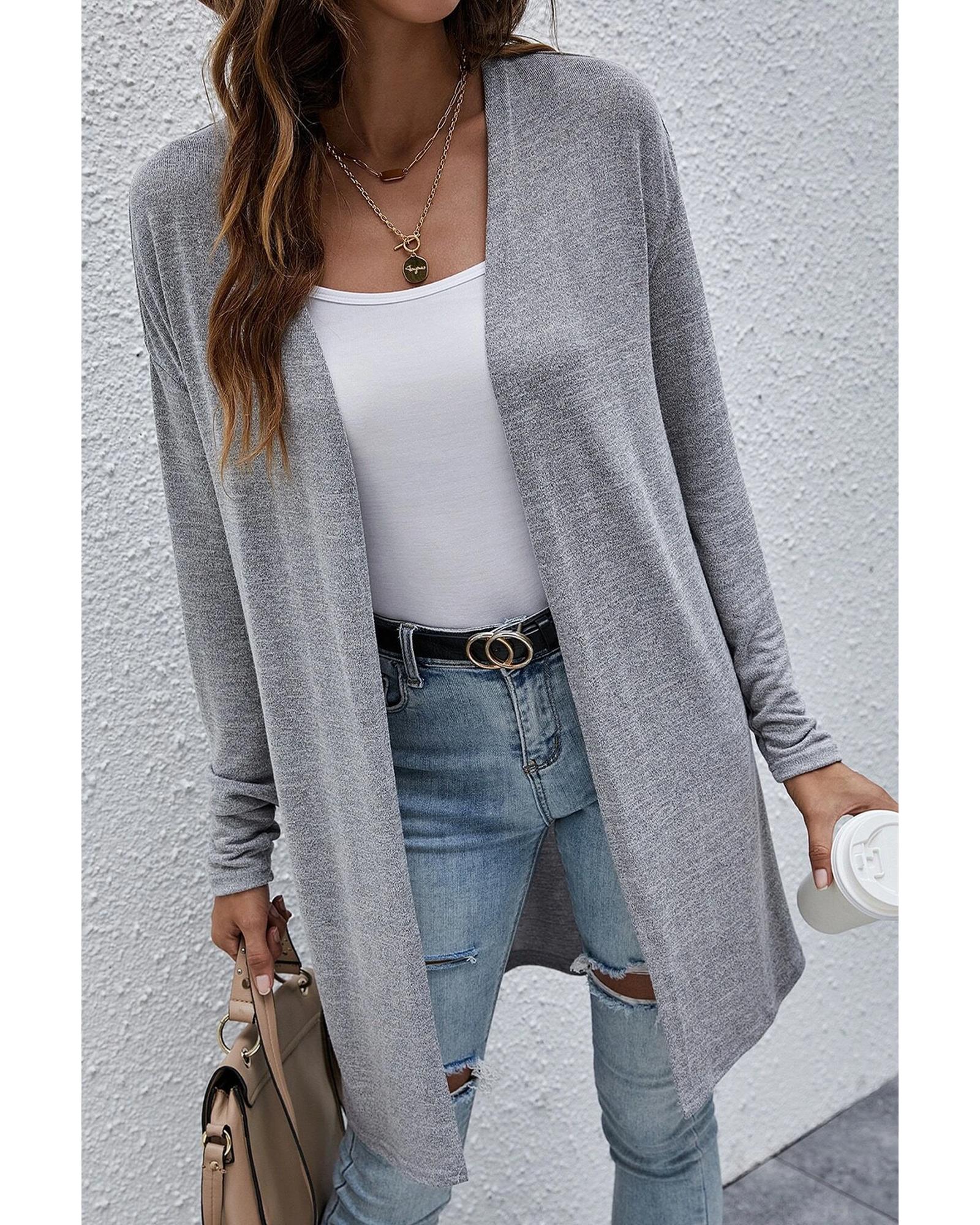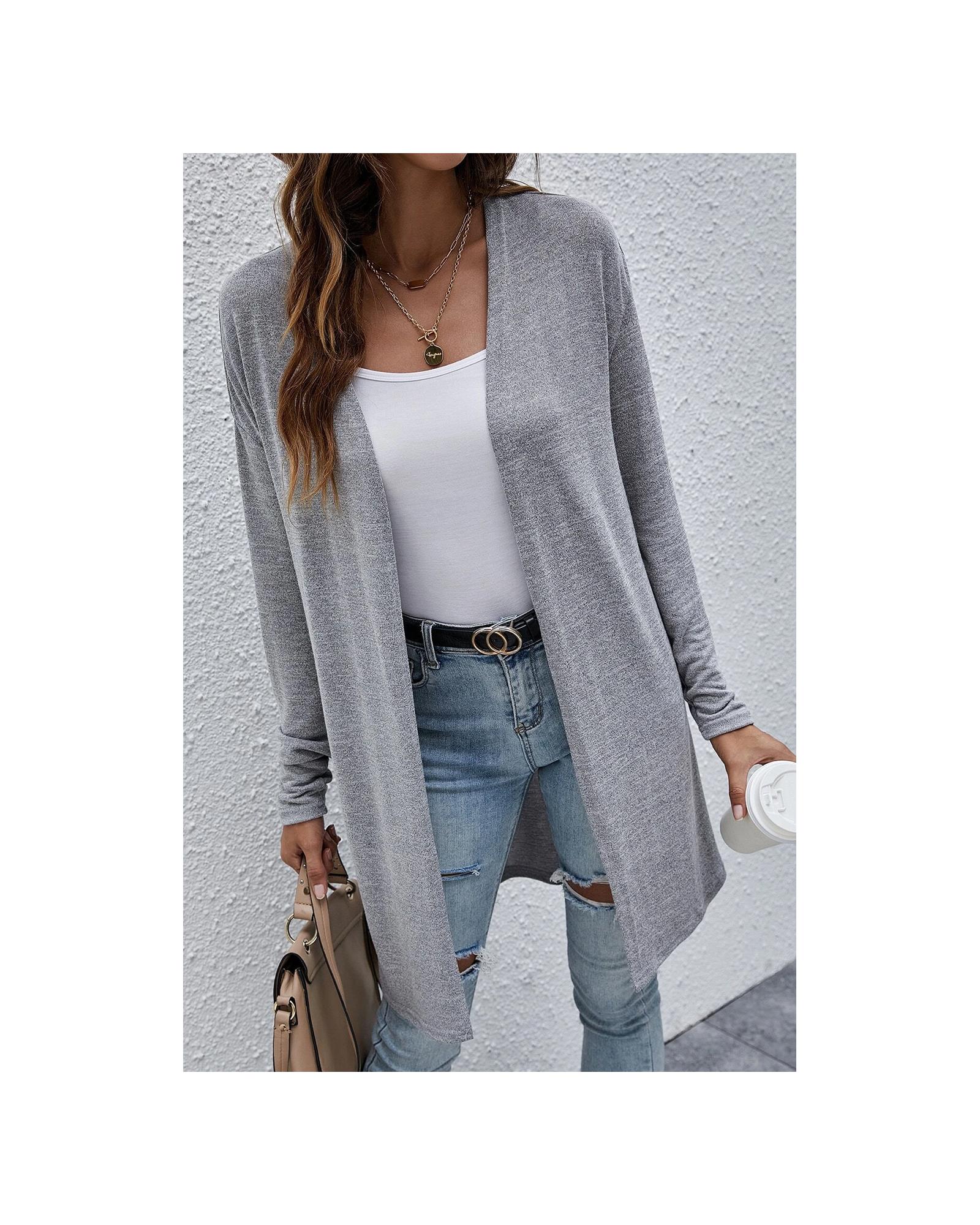 High Rise Solid Color Open Front Lightweight Cardigan – L
