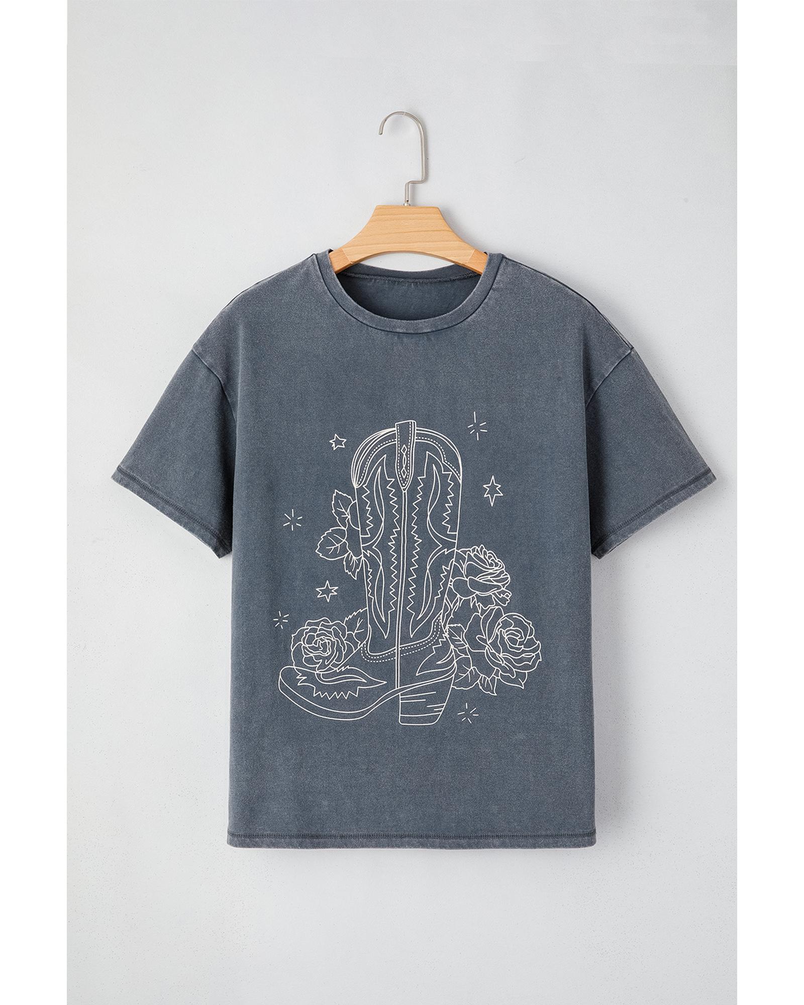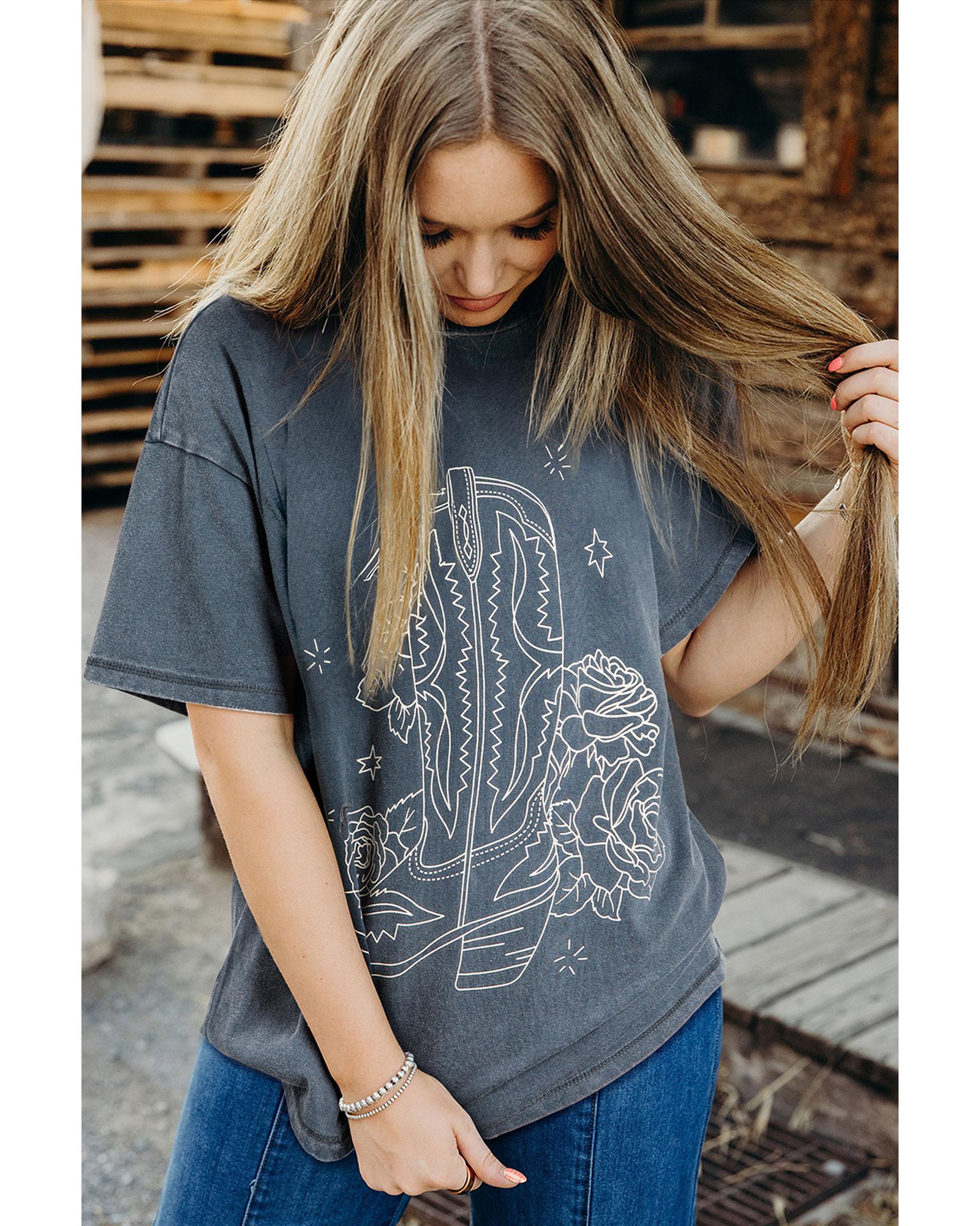 High-Rise Western Cowboy Boots Graphic Tee – L