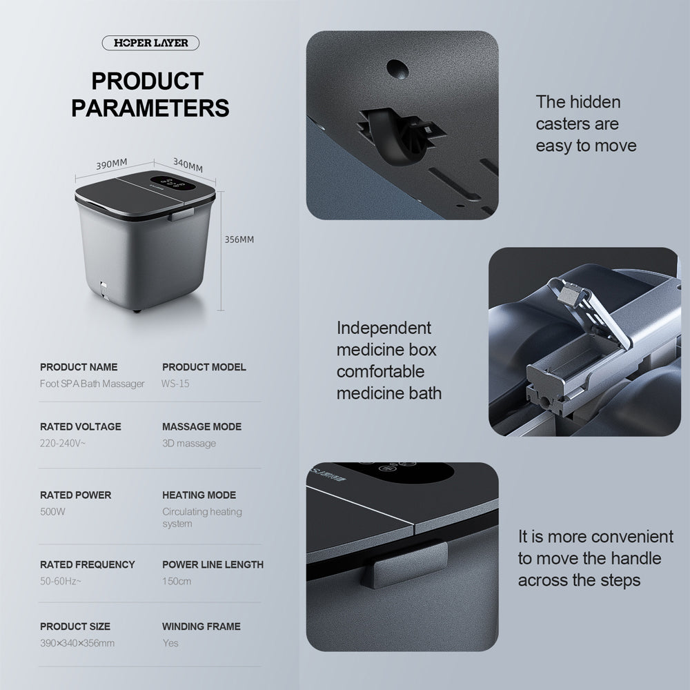 Hoper Layer Circulating Heating Foot SPA Bath Massager Dry and Wet Dual-use WS-15