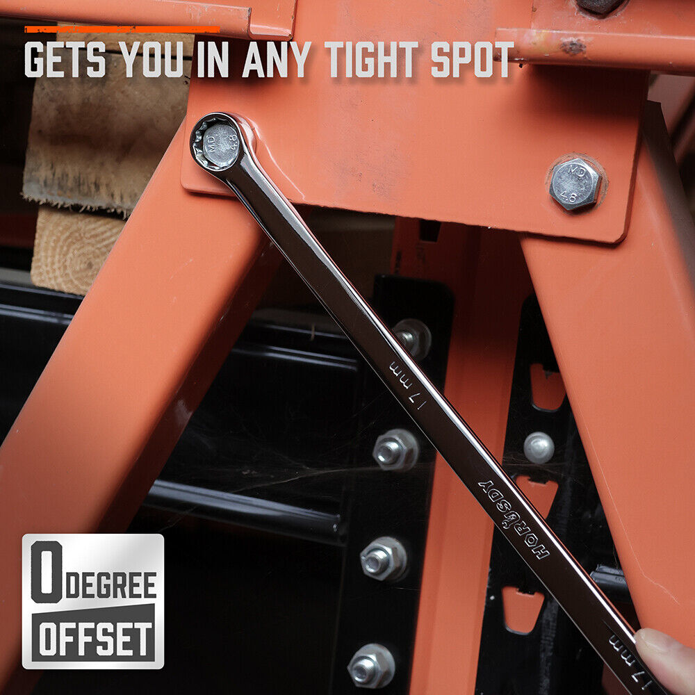HORUSDY 10Pc Extra Long Ratchet Spanner Set Aviation Double End 8-19mm w/t Pouch