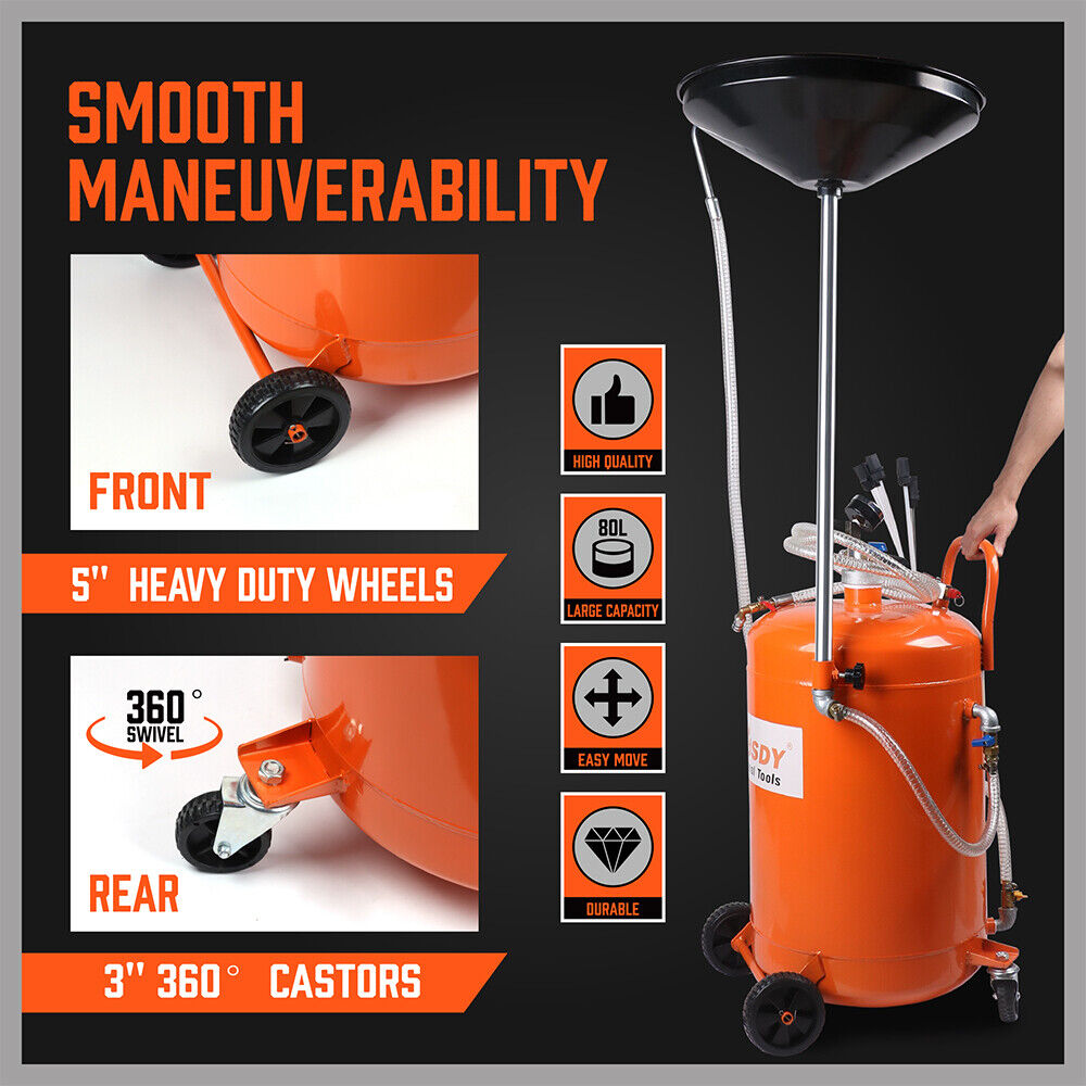 HORUSDY 80L Waste Oil Drainer Pneumatic Fluid Collection Workshop with Extractor