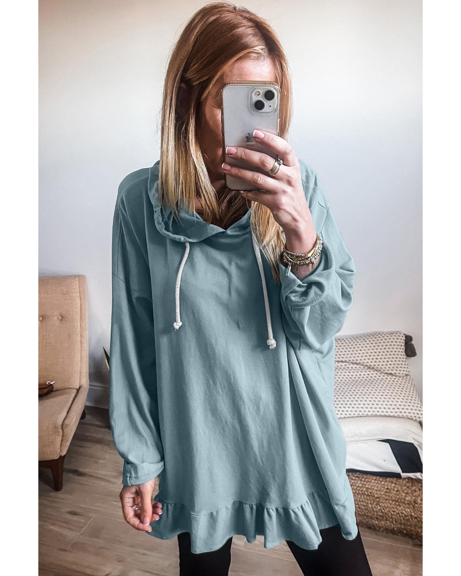 - Iceland Blue Solid Ruffled Hem Loose Fit Tunic Hoodie