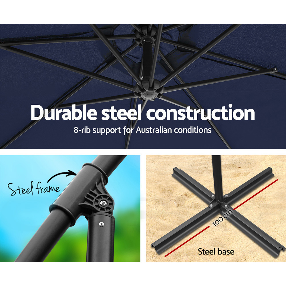 Instahut 3m Outdoor Umbrella Cantilever Beach Garden Patio Navy