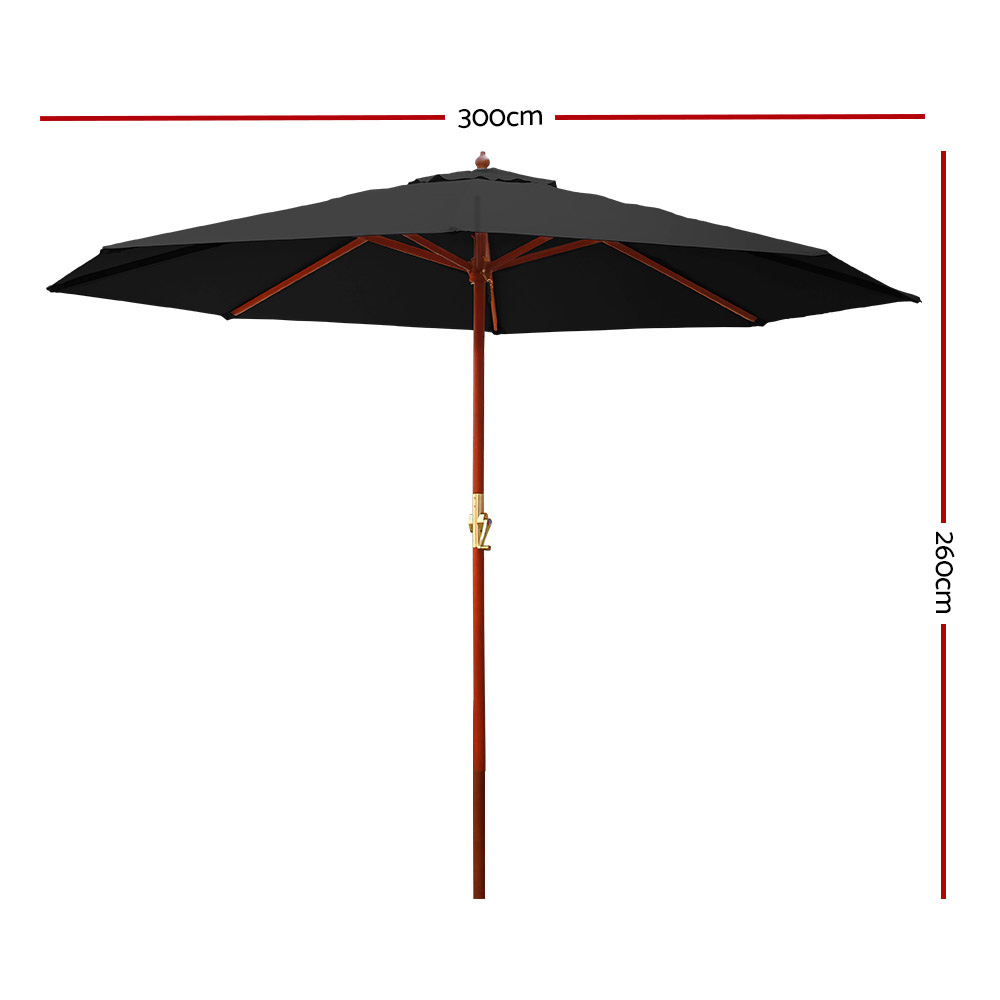 Instahut 3m Outdoor Umbrella Pole Umbrellas Beach Garden Sun Stand Patio Black