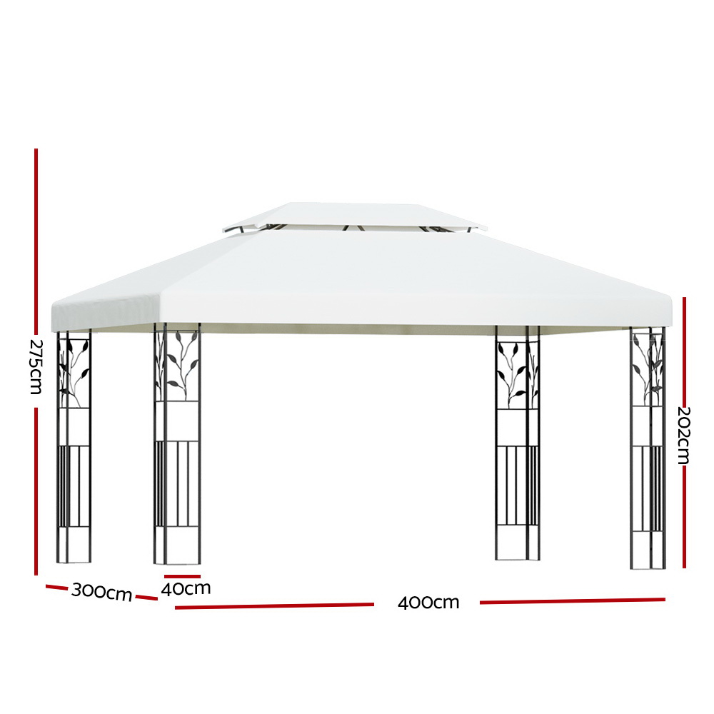Instahut Gazebo 4x3m Marquee Outdoor Wedding Party Event Tent Home Iron Art Shade White