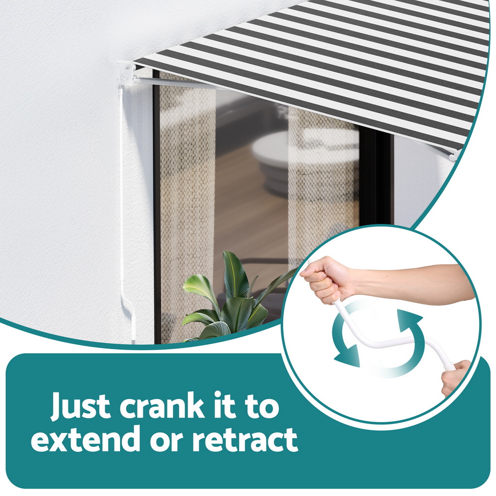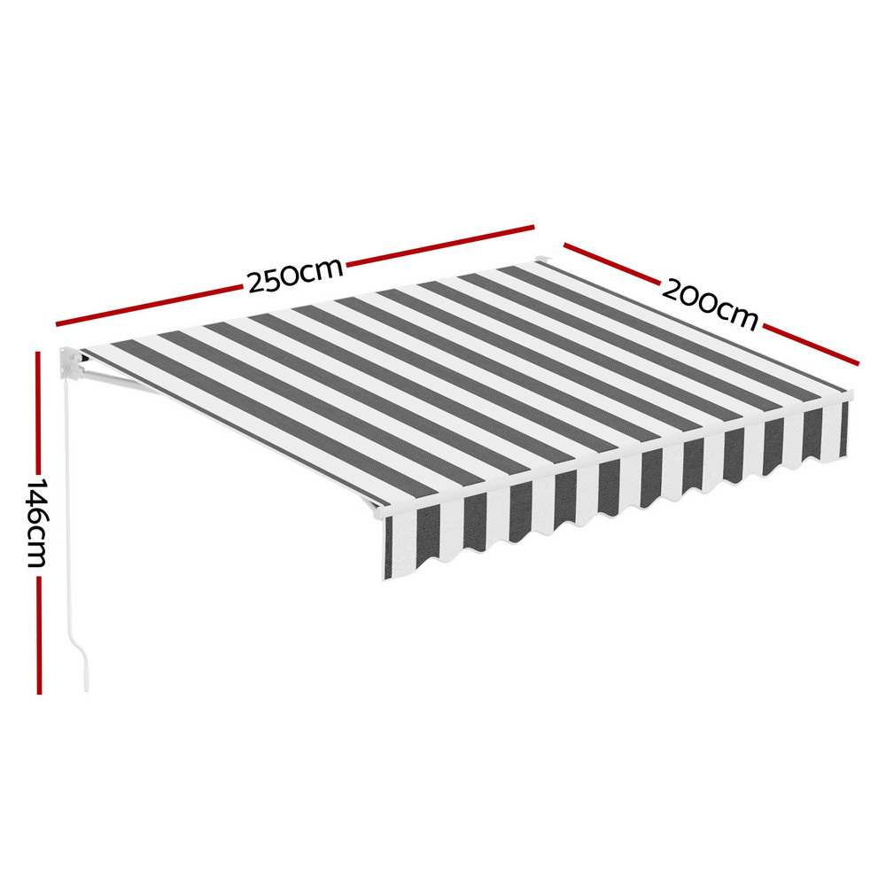 Instahut Retractable Folding Arm Awning Manual Sunshade 2.5Mx2M Grey White