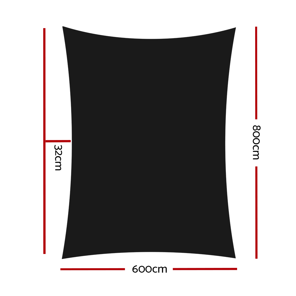 Instahut Shade Sail 6x8m Rectangle 280GSM 98% Black Shade Cloth