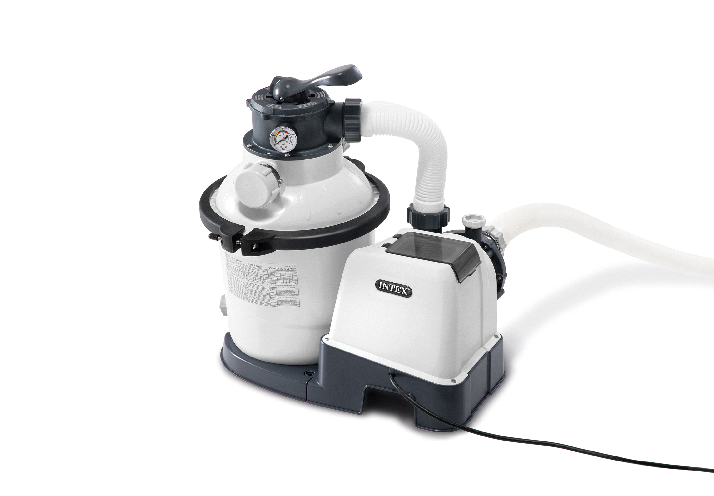 Keep your above ground pool water clean, soft, and refreshing with the Krystal Clear Sand Filter Pump by Intex�. The sand provides excellent water filtration as the 6-function control valve allows the pool owner to: filter, backwash and rinse, recirculate, drain and close the system. The built in 24-hour timer adds to the hassle-free experience with maintaining a cleaner pool. The strainer basket provides easy-cleaning, and prolongs the life of the sand. The Krystal Clear Sand Filter Pump generates a pump flow rate of 925 gallons per hour, ideal for above ground pools. This pump requires virtually no maintenance except replacement of sand every 5 years.