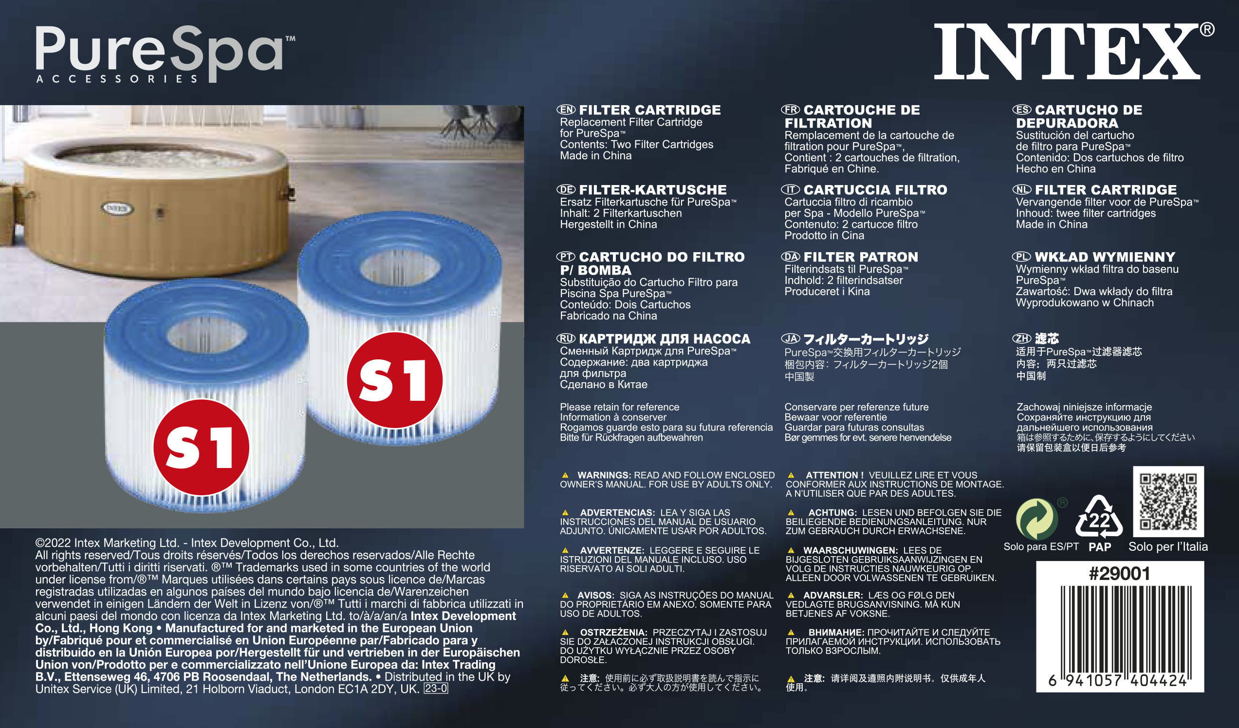 - The S1 Cartridge Filter is sure to keep your PureSpa Jet Massage water clean and fresh