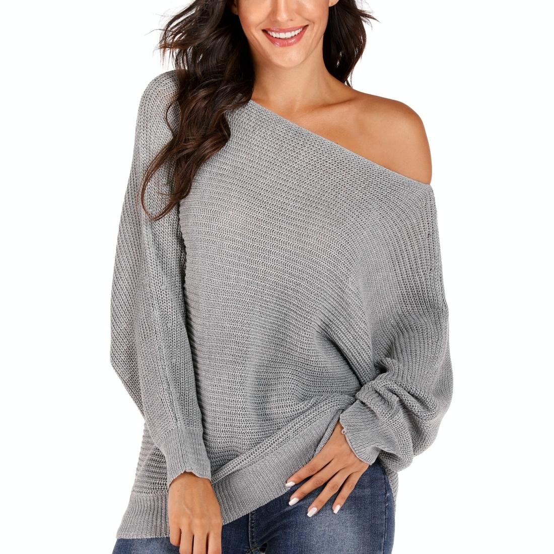 Irregular Bat Sleeve Sweater Grey – L – Grey L