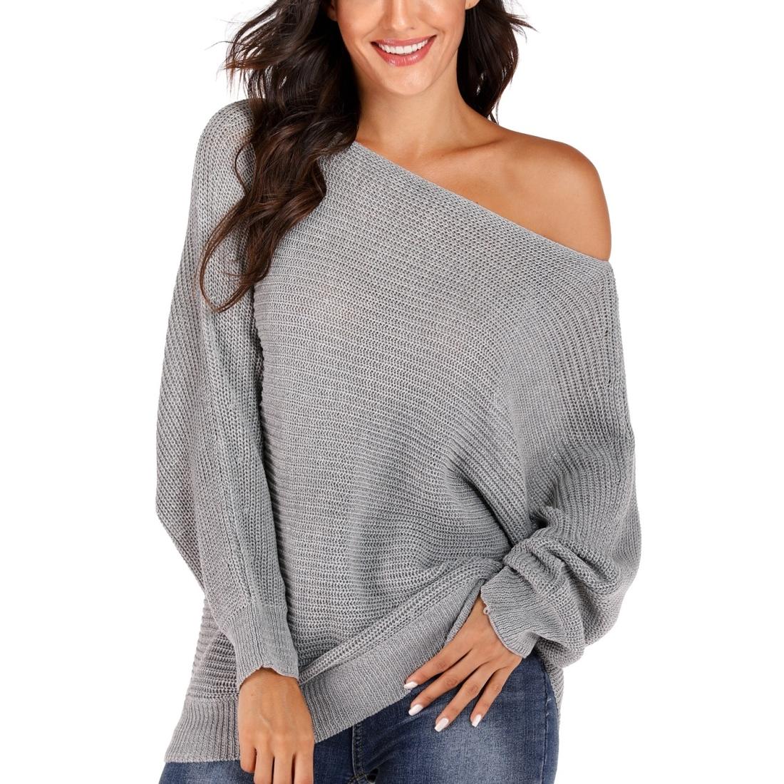 Irregular Bat Sleeve Sweater Grey – L – Grey M