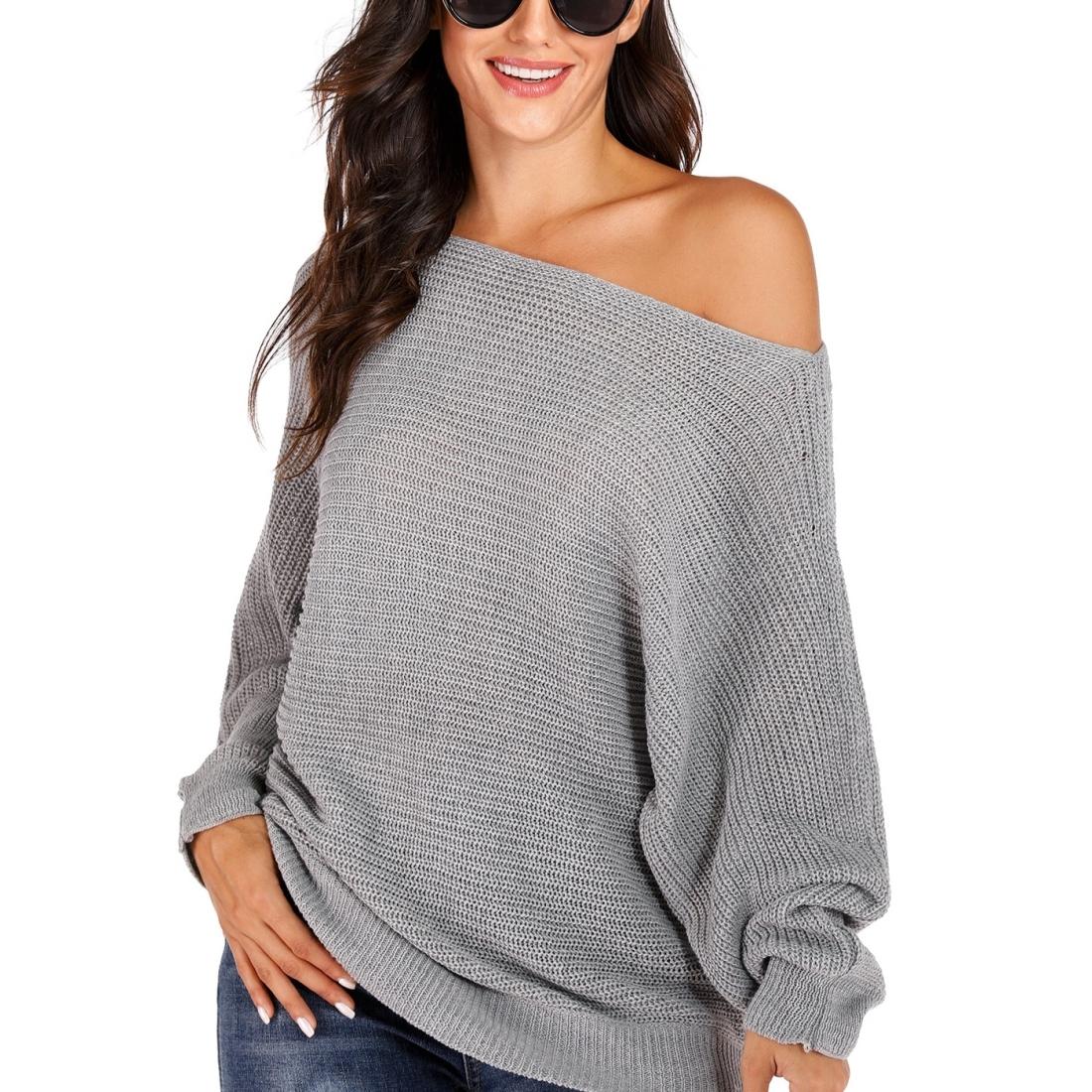 • 1 x Irregular Bat Sleeve Sweater Grey – L