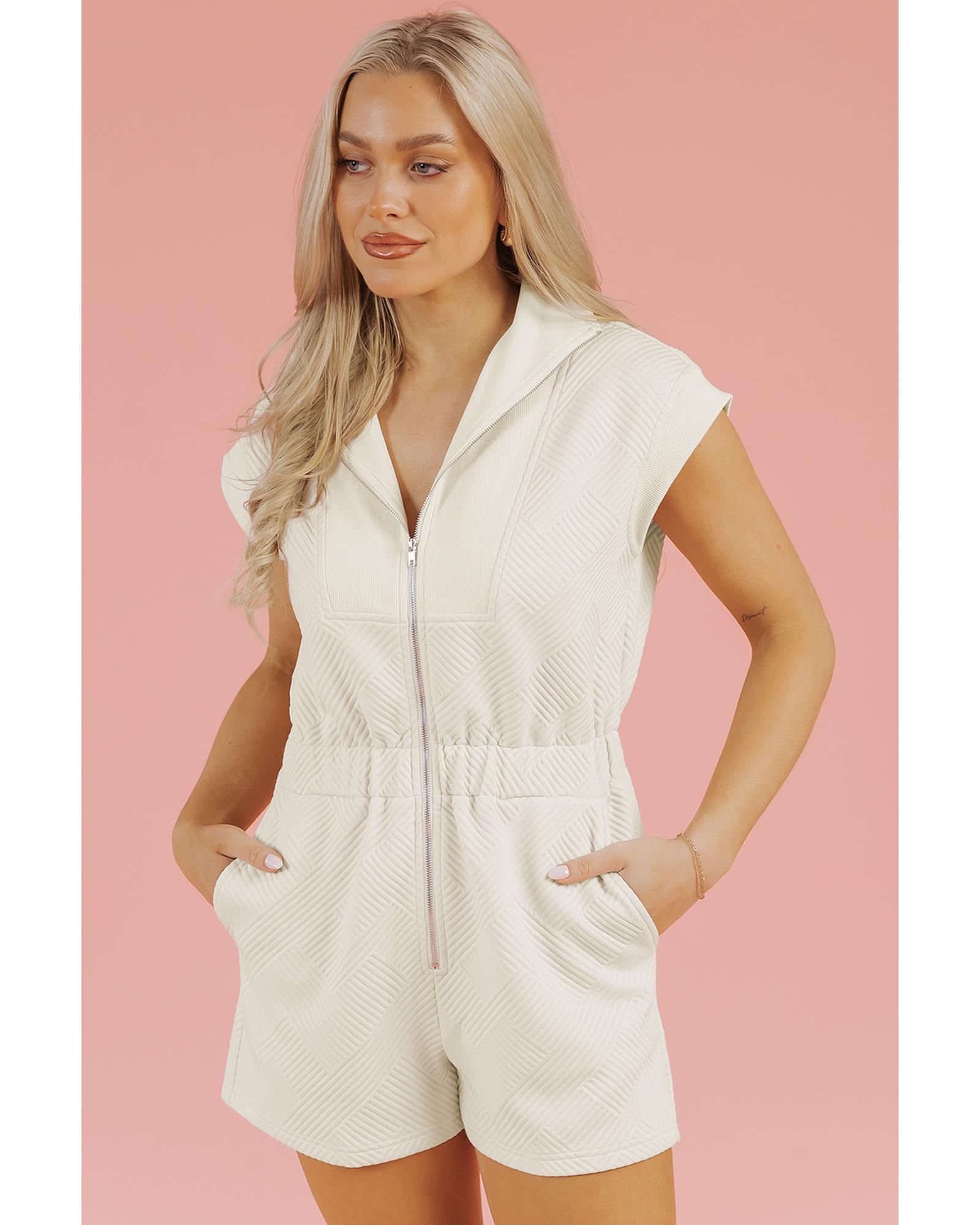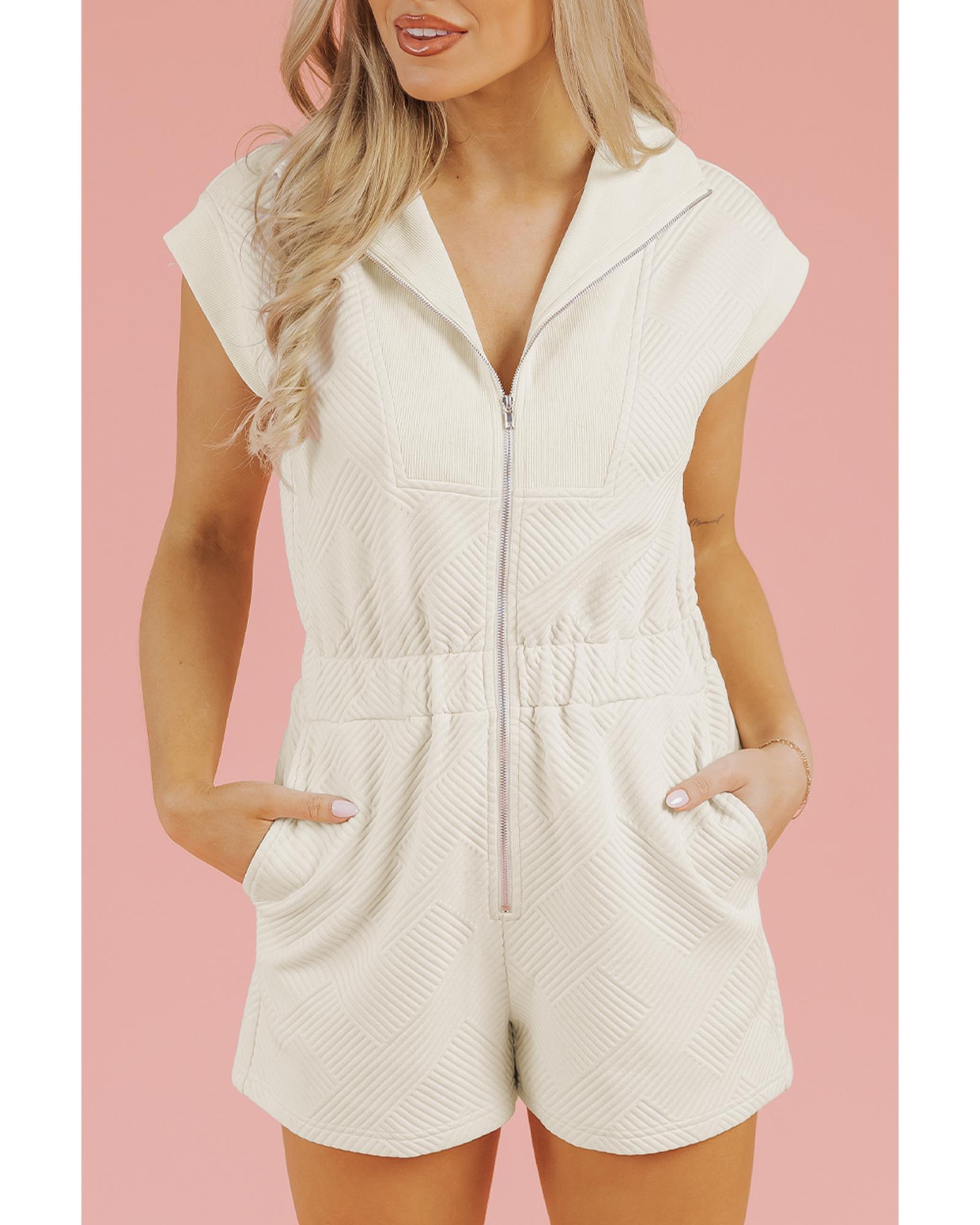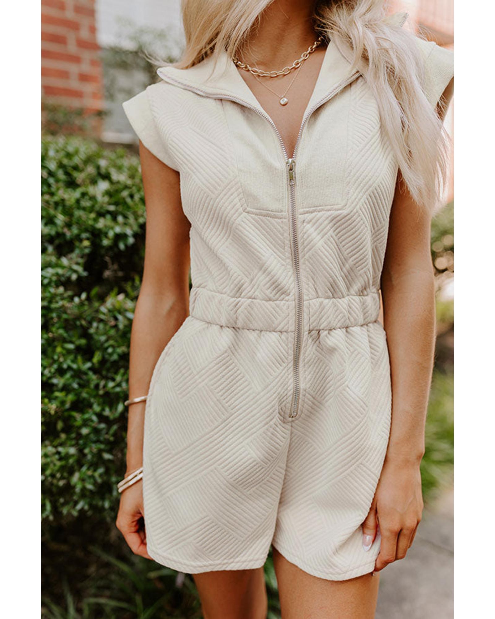 Jet Stream Textured Zipped Front V Neck Collared Casual Romper – XL