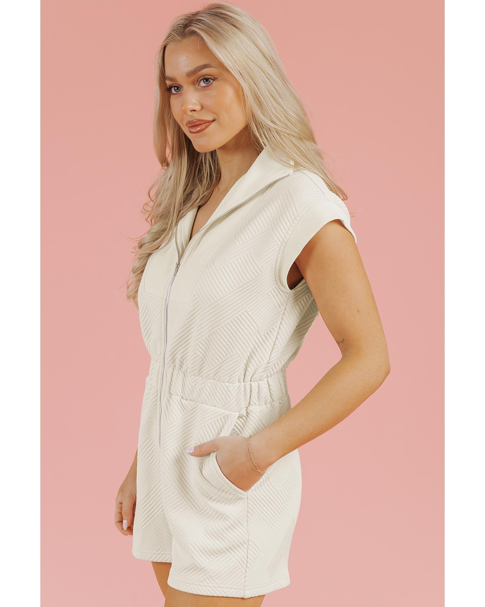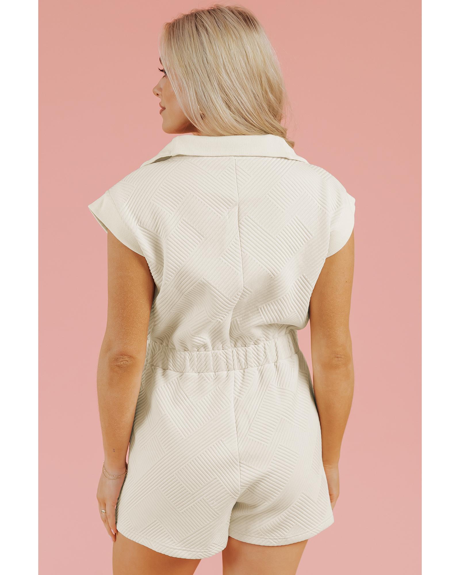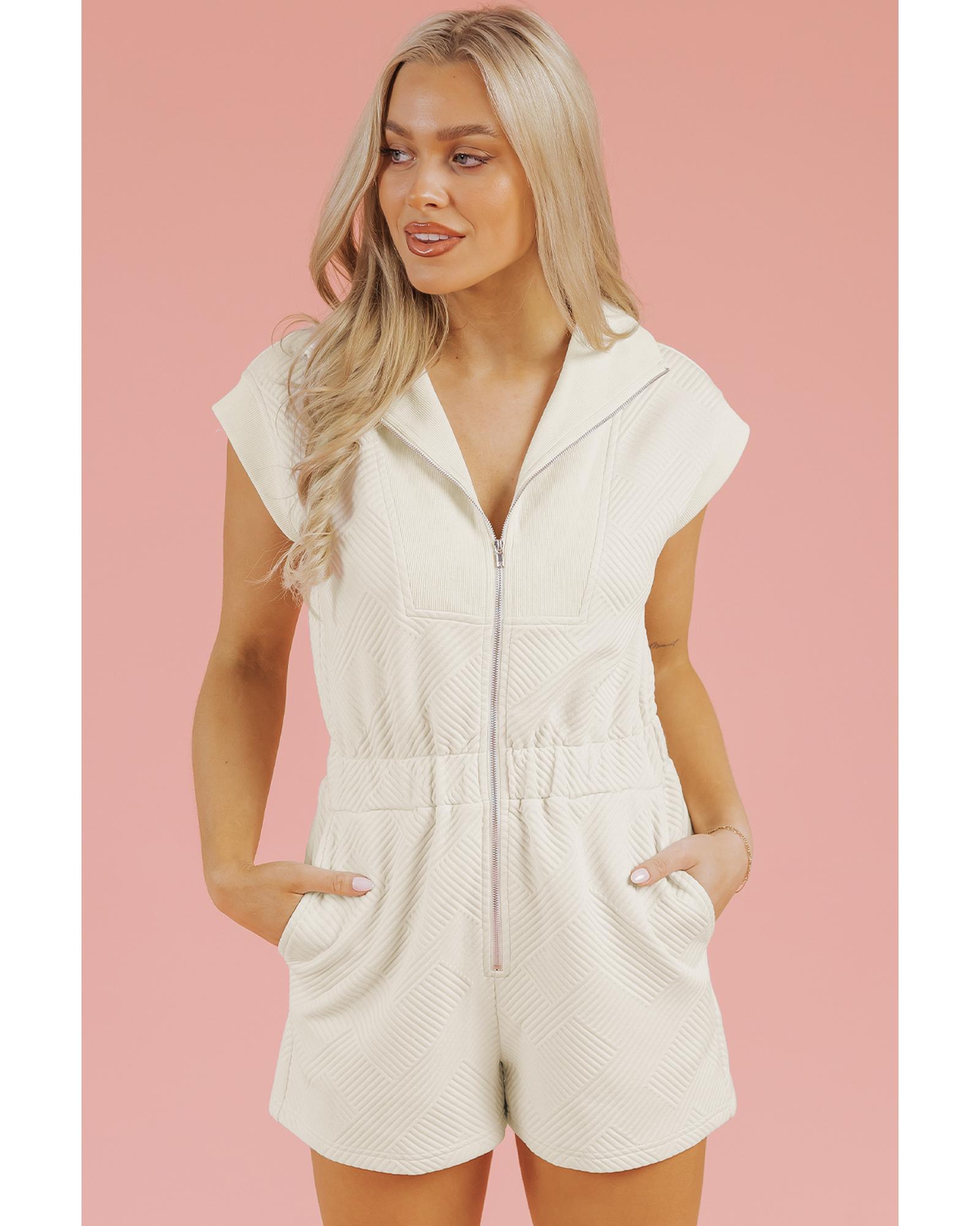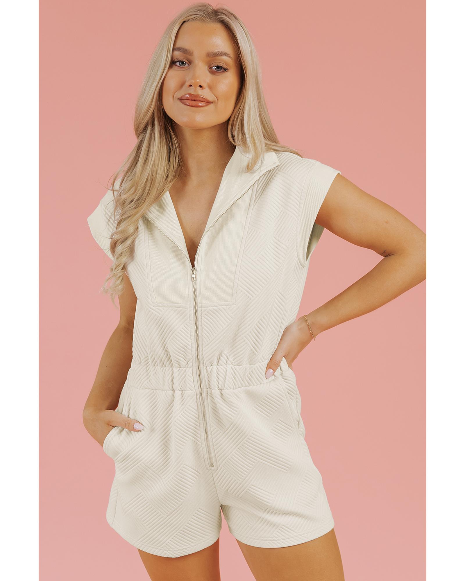 Jet Stream Textured Zipped Front V Neck Collared Casual Romper – XL