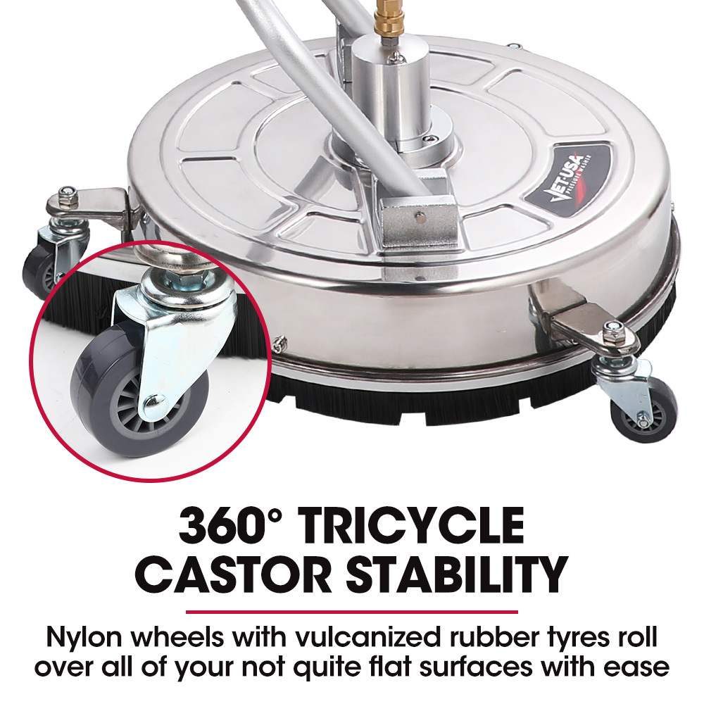 The Jet-USA 18′ Stainless Steel Pressure Washer Surface Cleaner Attachment is the perfect tool to clean your concrete driveway, patio, deck or garage floor. This easy gliding disk puts powerful cleaning and ease of use at your disposal with the wide 46cm cleaning area.