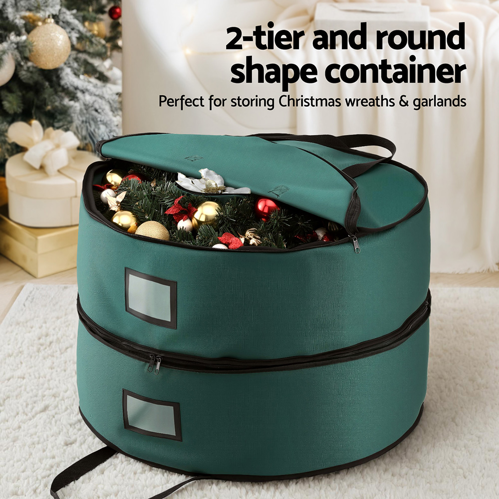 Jingle Jollys Christmas Garland Wreath Storage Bag 2-Tier Ornaments Holder 60cm