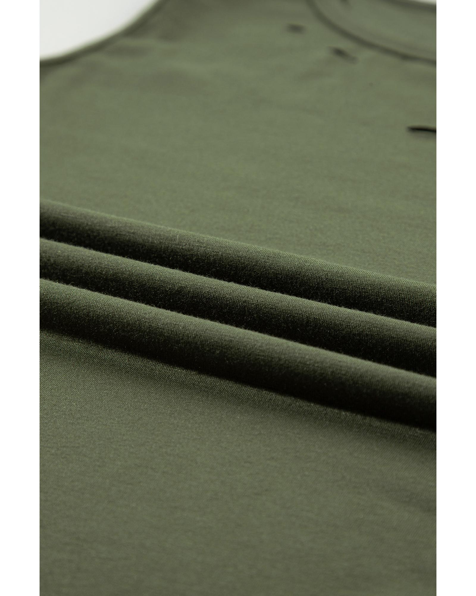 Jungle Green Solid Color Distressed Holes Crew Neck Tank Top – L
