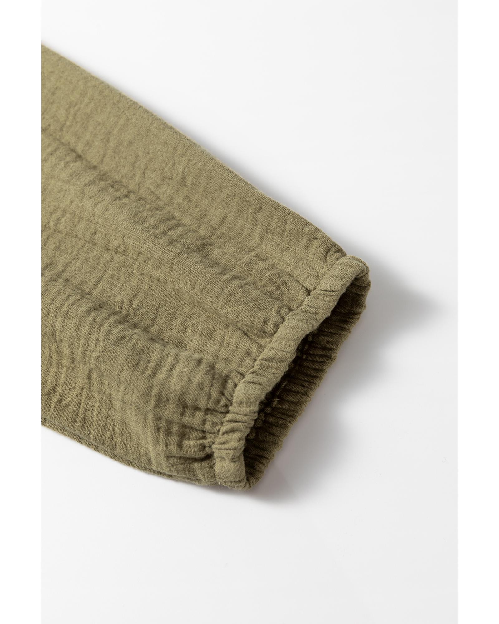 Jungle Green Textured Bracelet Sleeve Collared Button Up Dual Tied Mini Dress – XL