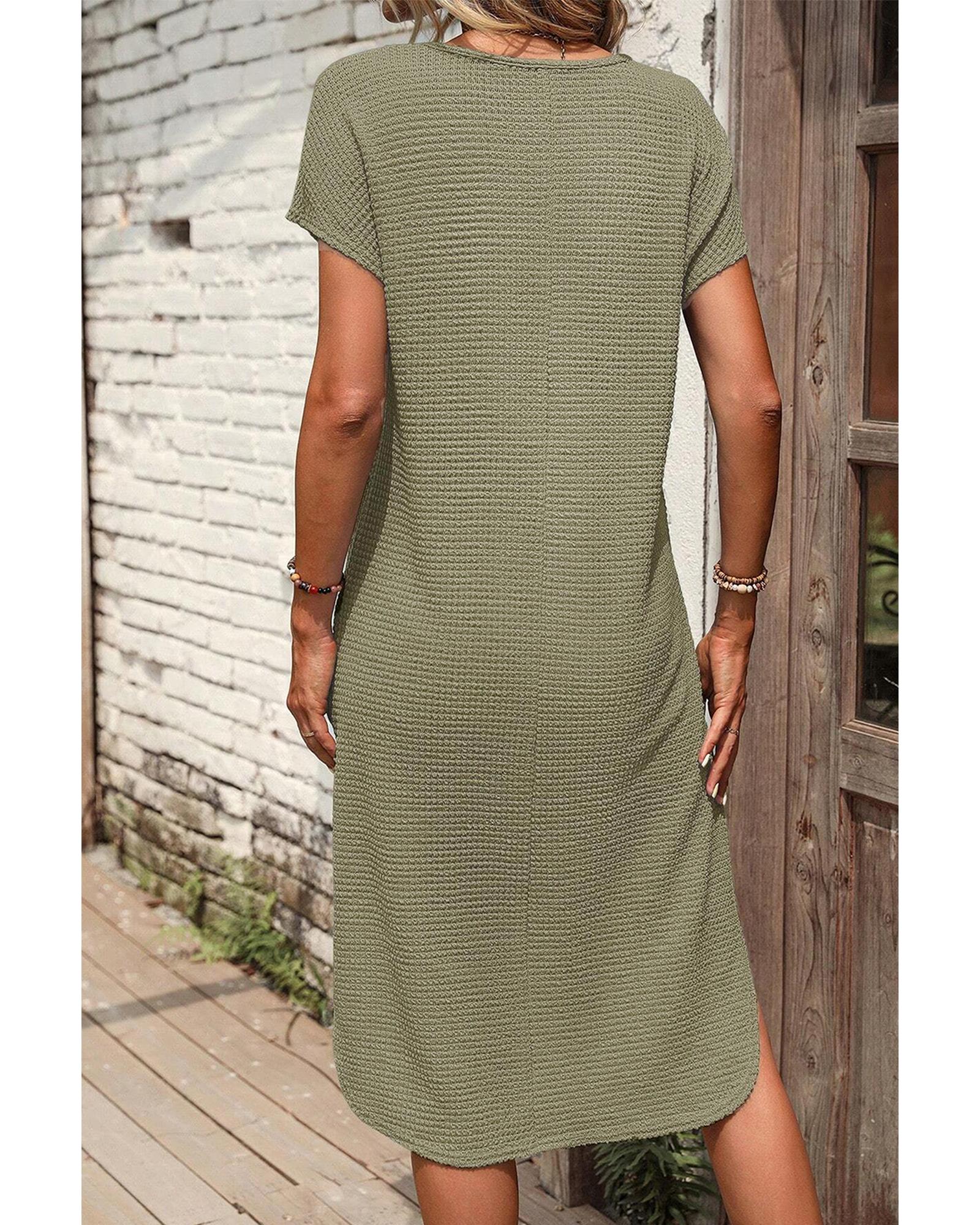 Jungle Green Waffle Texture Curved Hem Side Slit T-shirt Dress – M