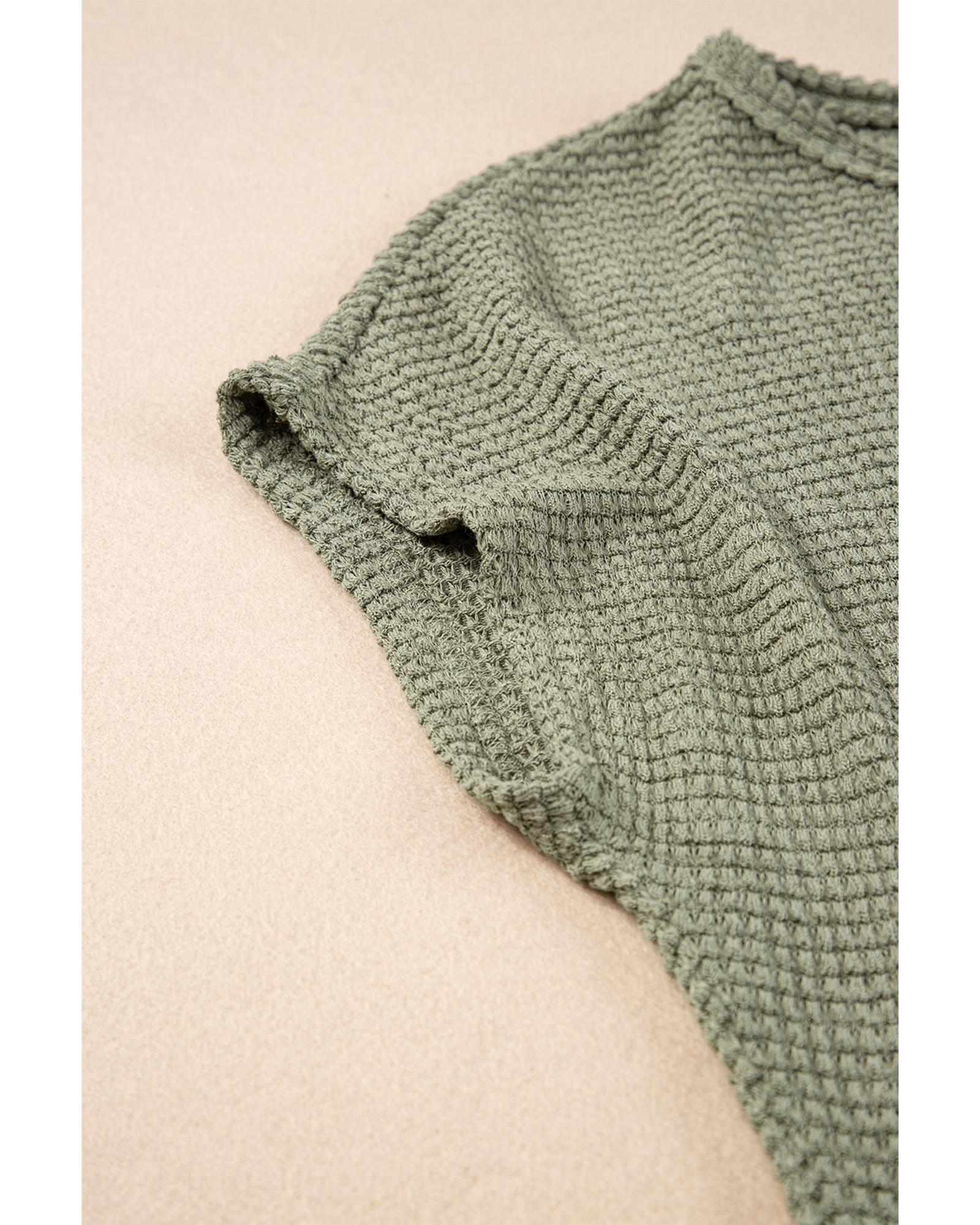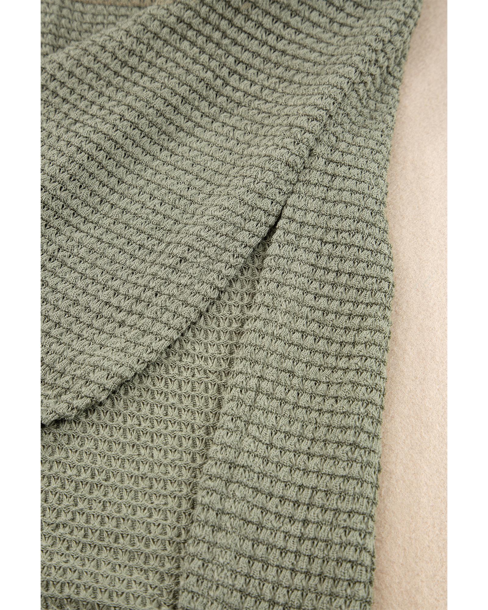 - Jungle Green Waffle Texture Curved Hem Side Slit T