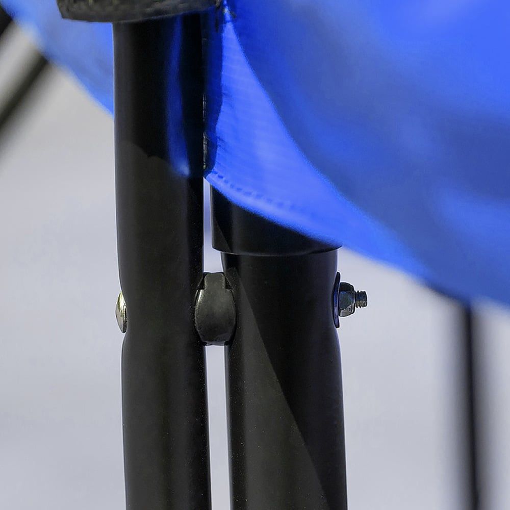 This is a heavy trampoline and uses linked legs and grounding straps for superior stability. The structure of the legs also minimises the tendency for legs to dig into the ground. Legs also feature re-enforced joint bars to enhance strength and stability.