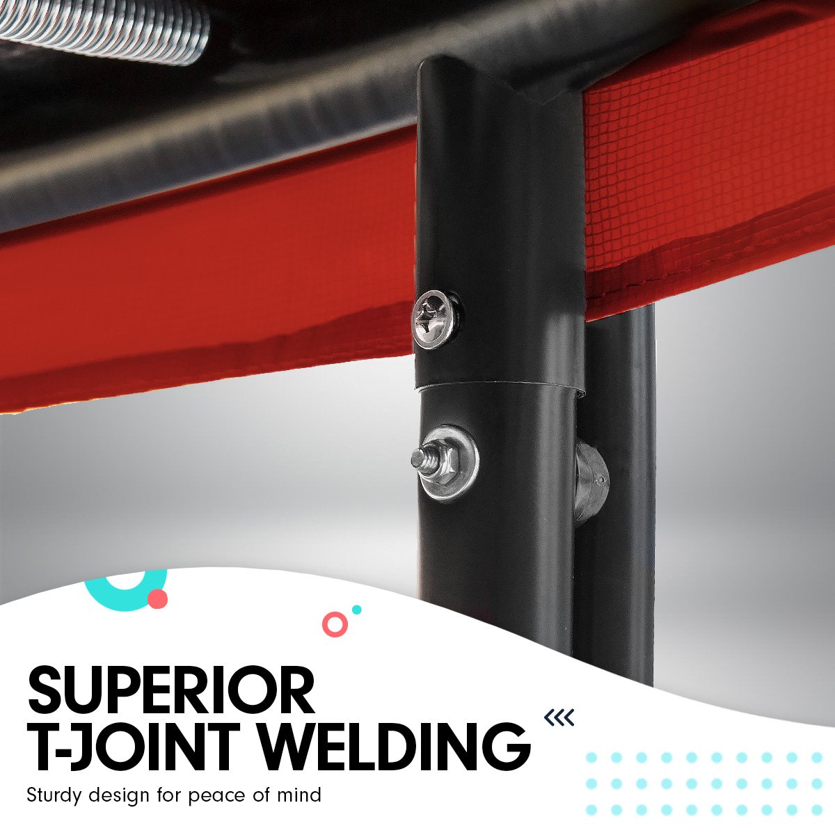 Designed for Australian families, this trampoline has a UV-stabilised net and pad for lasting durability. It also has a heavy-duty, powder-coated steel frame that resists rust and corrosion.