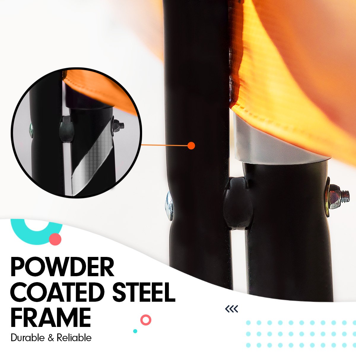 - Frame: Powder coated steel