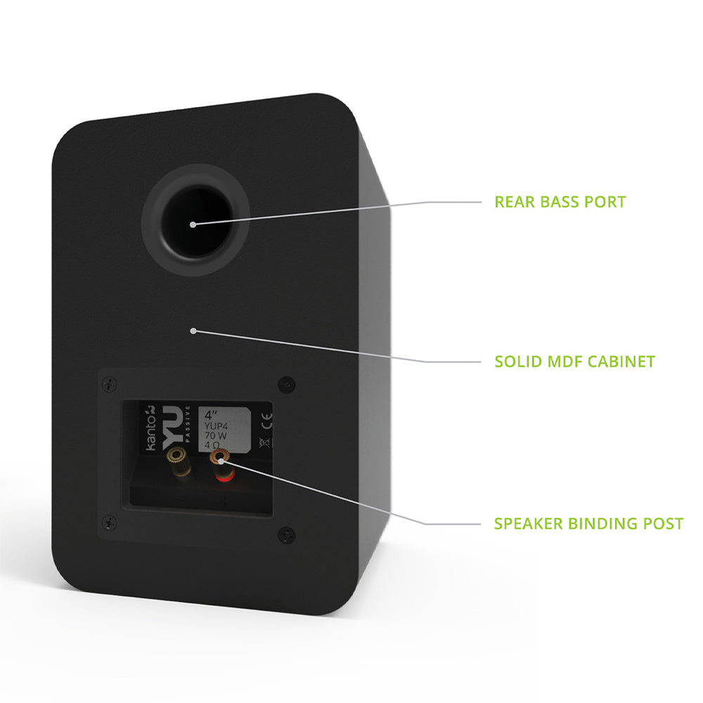 Built with high-performance components like 4-inch Kevlar woofers and 1-inch silk dome tweeters, the YU Passive delivers a neutral, natural sound profile with exceptional detail and wide dispersion. With a clean matte black finish and built-in threaded mounting holes, these speakers blend seamlessly into any setup while offering solid support on compatible Kanto speaker stands.