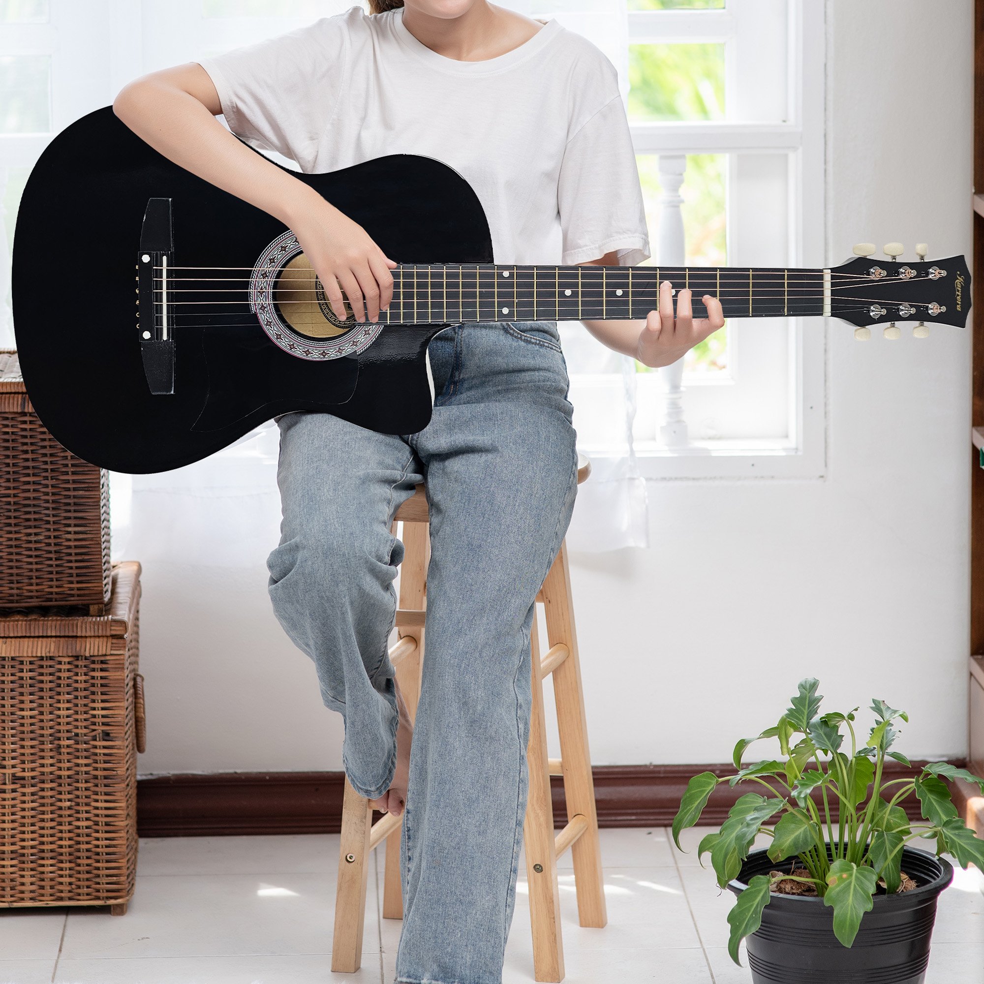 Karrera 38in Cutaway Acoustic Guitar with guitar bag – Black