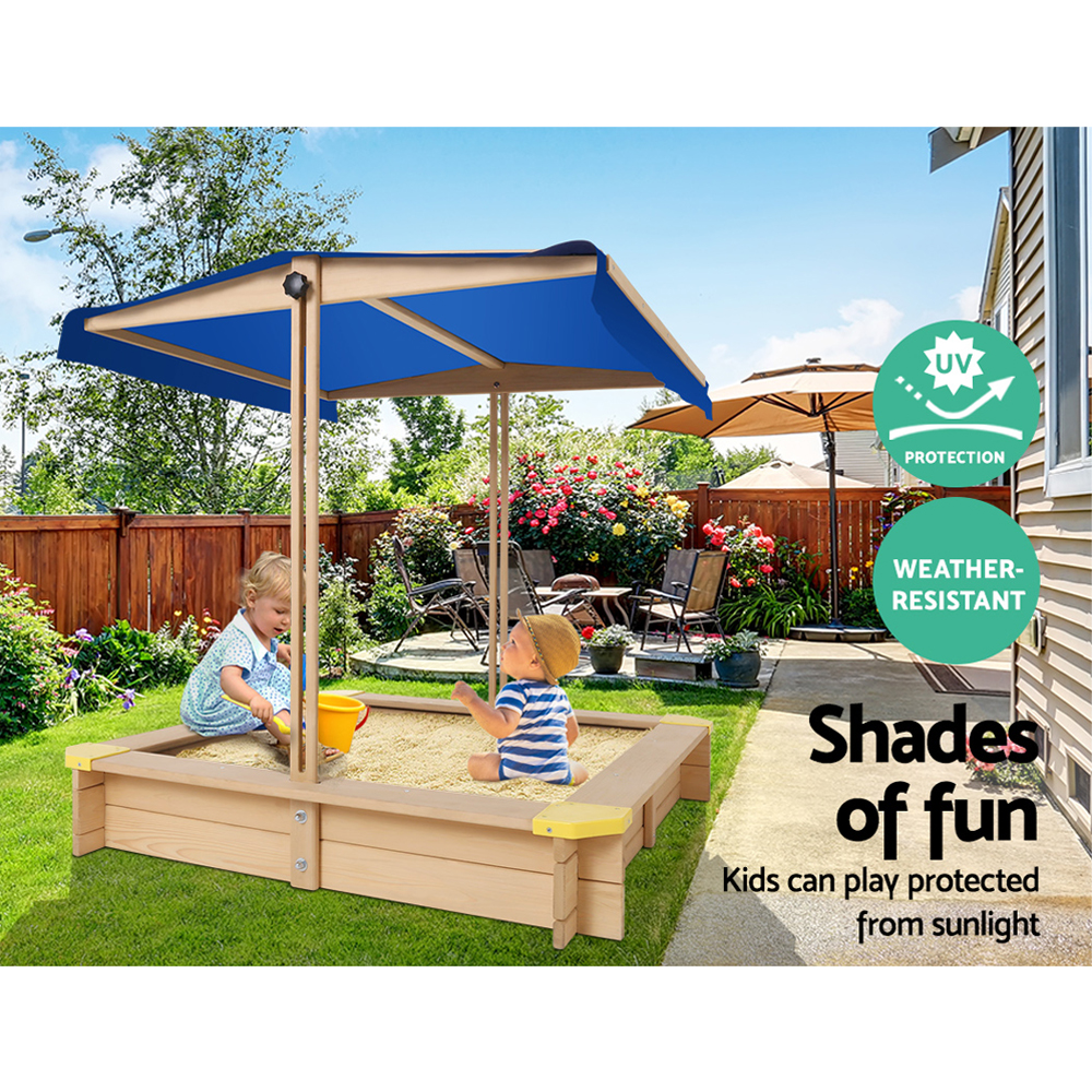 Keezi Kids Sandpit Wooden Sandbox Sand Pit with Canopy Bench Seat Toys 101cm
