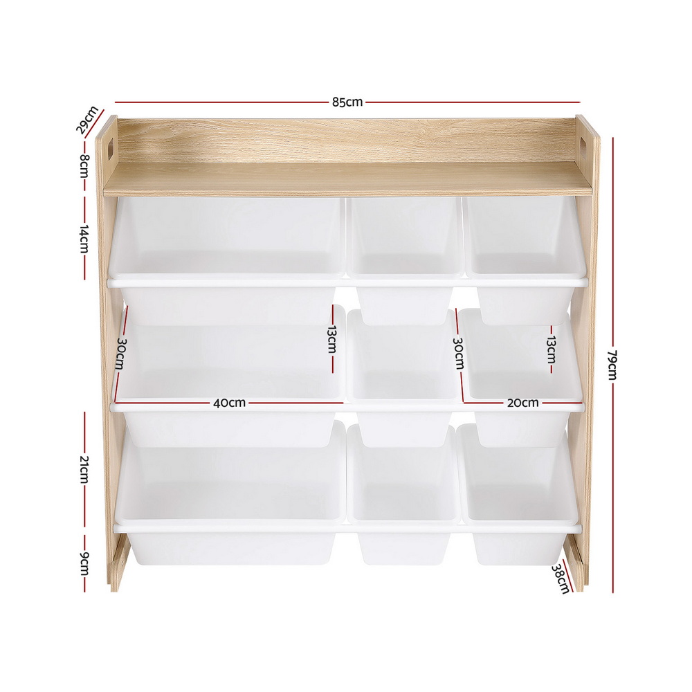 Keezi Kids Toy Box 9 Bins Bookshelf Organiser Display Shelf Storage Rack Wooden