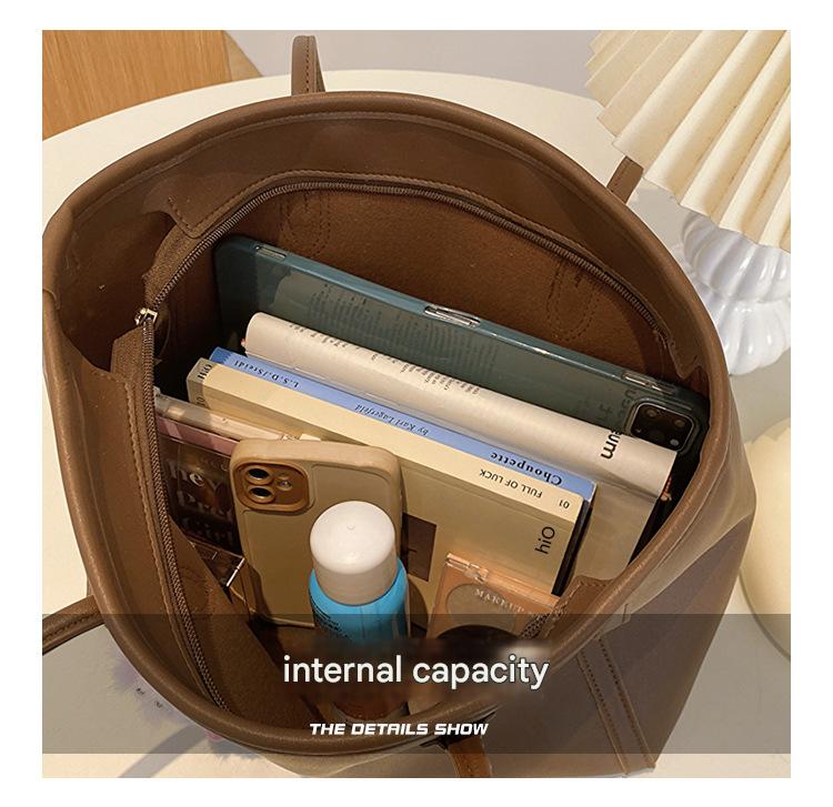 Khaki and Brown Chic Large Capacity Tote Bag – PU Leather Commuter Shoulder Handbag for Women