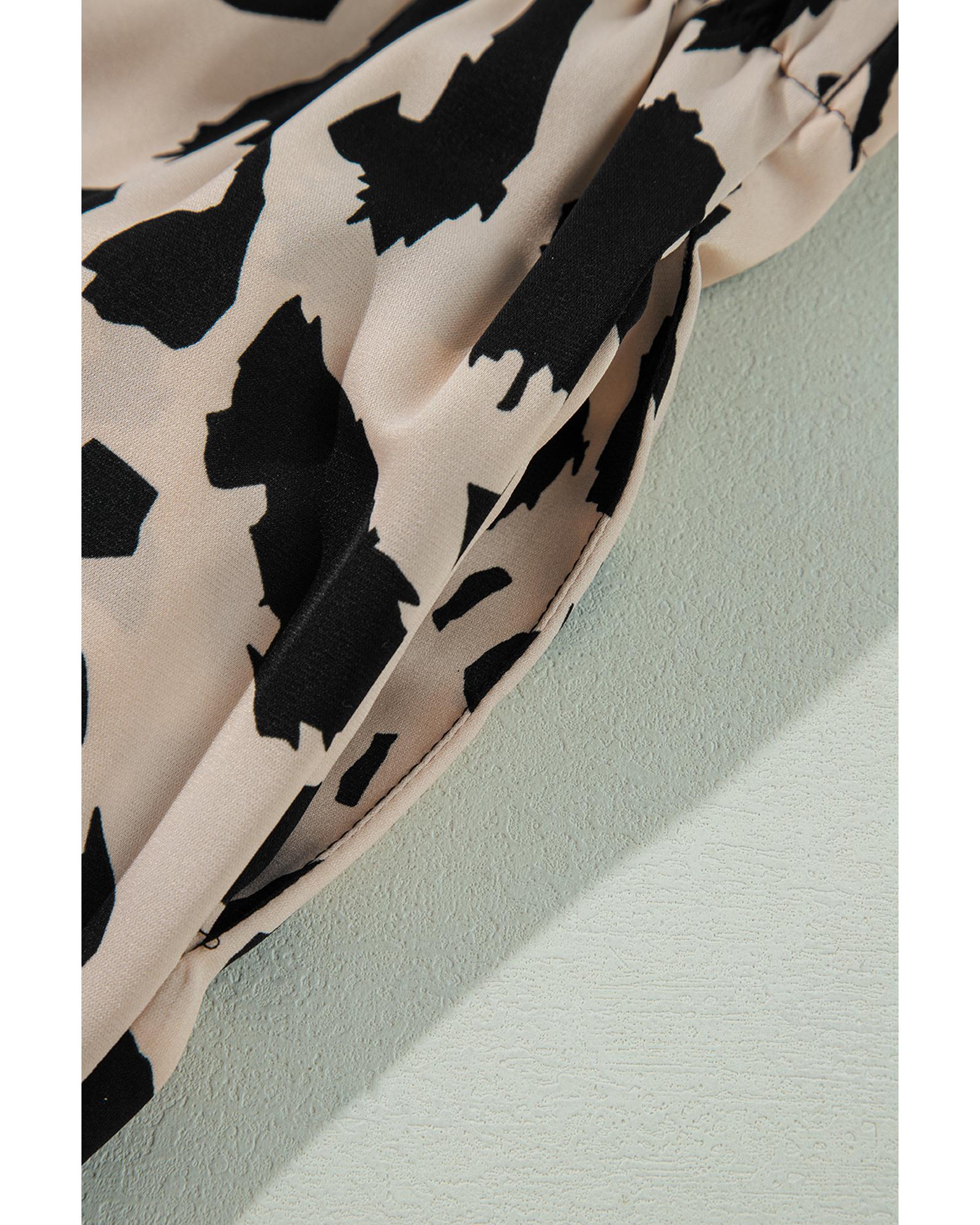 Khaki Cheetah Contrast Trim Loose Fit Two Piece Sleepwear – L