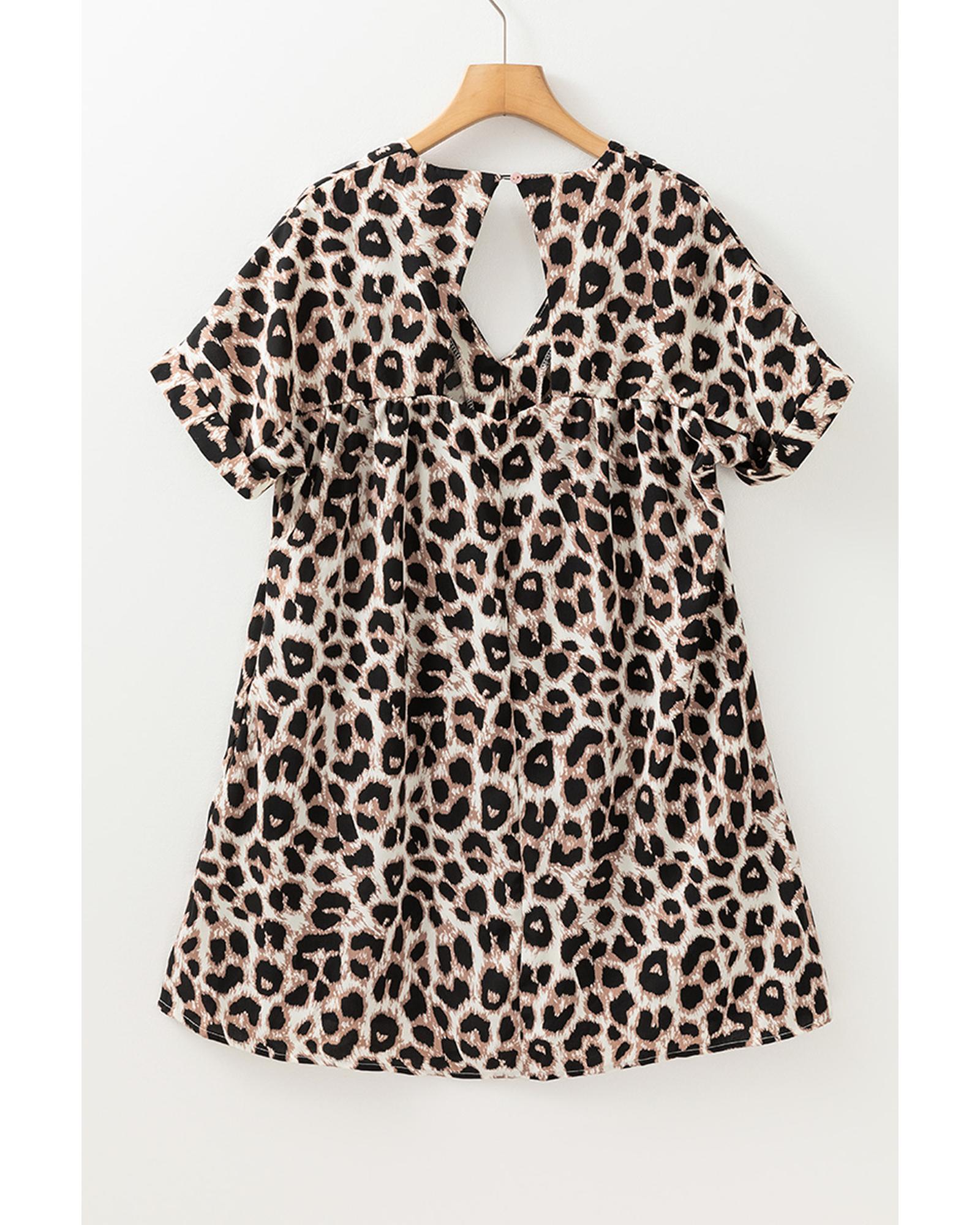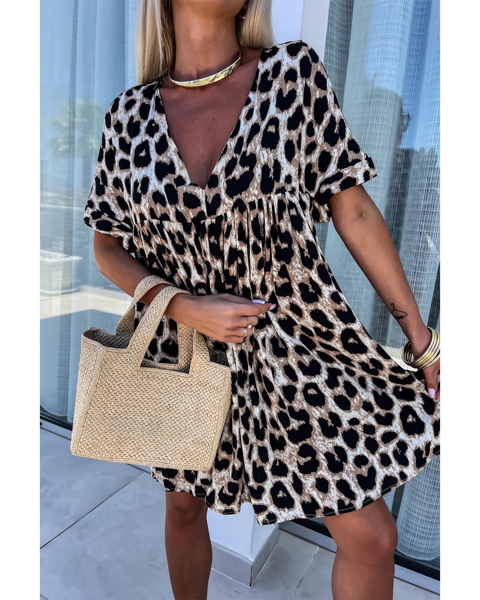 Khaki Cheetah Print Backless V Neck Loose Fit Mini Dress – L