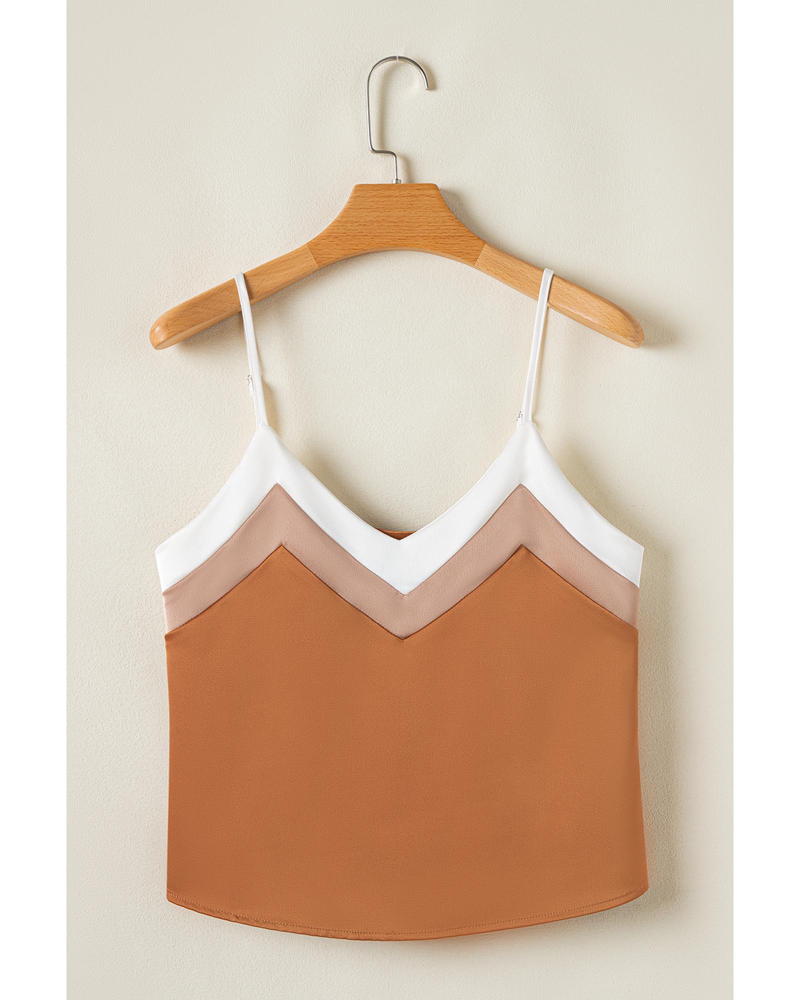 Khaki Chevron Color Block Spaghetti Straps Tank Top – XL